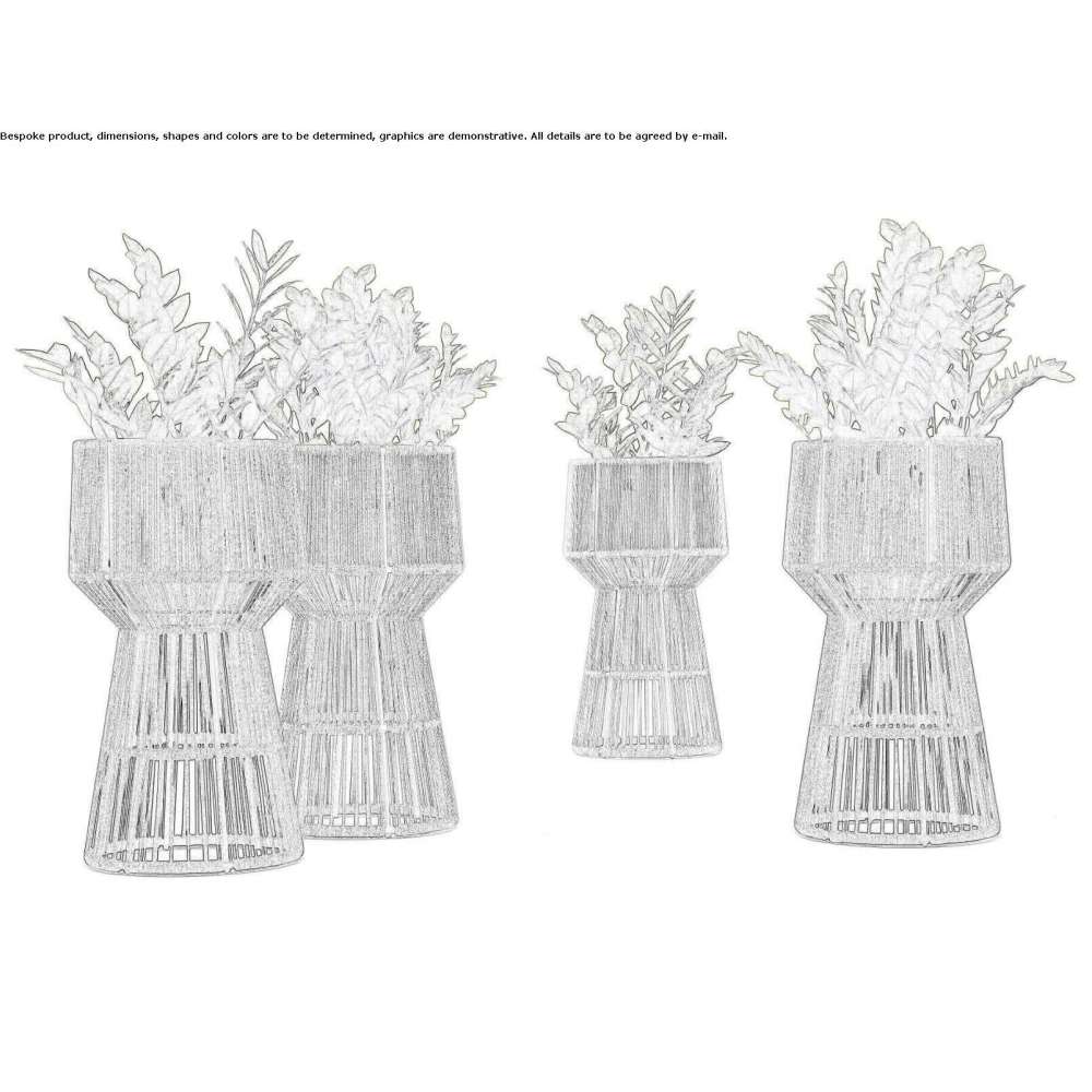 Na malowanej aluminiowej konstrukcji przewiewny, ręcznie tkany splot włókien syntetycznych rysuje powierzchnie donicy Loop.