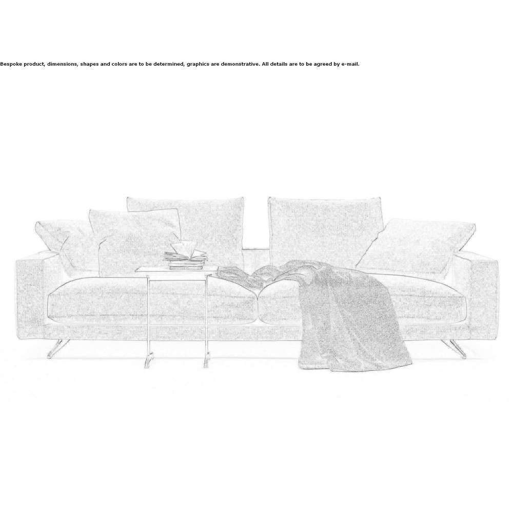Poduszki siedziska mają wkład z odpornego na zgniatanie materiału owiniętego dużą, miękką warstwą gęsiego puchu. Poduszki oparć siedzeń są również wypełnione gęsim puchem, aby zwiększyć wrażenie otulającej miękkości i są dostępne w wersjach z poduszką rolowaną lub bez, aby uzyskać różne efekty estetyczne i ergonomiczne. Wersja z poduszką rolowaną zapewnia większe wsparcie pleców i szyi. Sofa osadzona jest na eleganckiej podstawie z odlewu aluminiowego pomalowanej na szaro lub brązowo lub z wykończeniem satynowym, chromowanym, polerowanym, czarnym chromowanym lub szampańskim.
