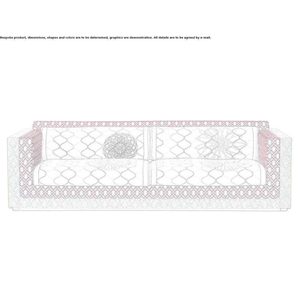 Sofa Karmakoma wykonana jest z odpornej na naprężenia, trudnopalnej pianki poliuretanowej o różnych gęstościach i włókna poliestrowego na drewnianej ramie. Sofa posiada nóżki z lakierowanego drewna bukowego przykręcone do ramy. Pokrywy kolekcji Sushi nie są zdejmowane, z wyjątkiem poduszek. Sushi, Karkaoma, Juju, Donut, Joy, haft adamaszkowy, orientalna symbolika, kwiatowe wzory i cyfrowe siatki: kolekcja, która odnajduje swoją tożsamość w obfitości warstw. Następuje kumulacja różnych bodźców i bodźców, maniakalny przepływ, który przechodzi od form architektonicznych do różnych obrazów z folkloru. Tradycyjna, futurystyczna, cyfrowa racjonalność, trójwymiarowość, romantyczna, psychodeliczna uniesienia, wizualny tygiel tkanin, strach przed pustką, harmonią, nieskromnością, delikatnością i geometryczną surowością…niekończący się ciąg obrazów i wizji, który ani nie przeraża, ani nie onieśmiela, ale raczej wita użytkownika w miękkim, hipnotycznym kalejdoskopie. Niebieska edycja kolekcji Sushi dla Moroso opiera się na oryginalnej serii Sushi, zabawnej gamie wyrafinowanych rozwiązań do siedzenia do salonów. Podczas gdy oryginalną linię charakteryzuje bogactwo kolorów, niebieska edycja ma bardziej dostojny wygląd z subtelnymi geometrycznymi wzorami w odcieniach od cerulean po królewski, kobaltowy błękit. Dodatkowo kolekcja będzie zawierać edycje czerwoną, zieloną i szarą. Kolekcję Sushi zaprojektowano z myślą o oferowaniu szerokiej gamy opcji siedzeń do salonów i holów. Od otwartych ławek i puf po krzesła o wysokich ścianach umożliwiające bardziej prywatne rozmowy lub intymne spotkania twarzą w twarz. Zaskakująca różnorodność kształtów przekształca przestrzenie w krajobrazy, w których harmonijne kolory i wzory służą spajaniu różnych elementów. Wszystkie tkaniny firmy Febrik są tkane z trwałych, a jednocześnie bardzo wygodnych materiałów.