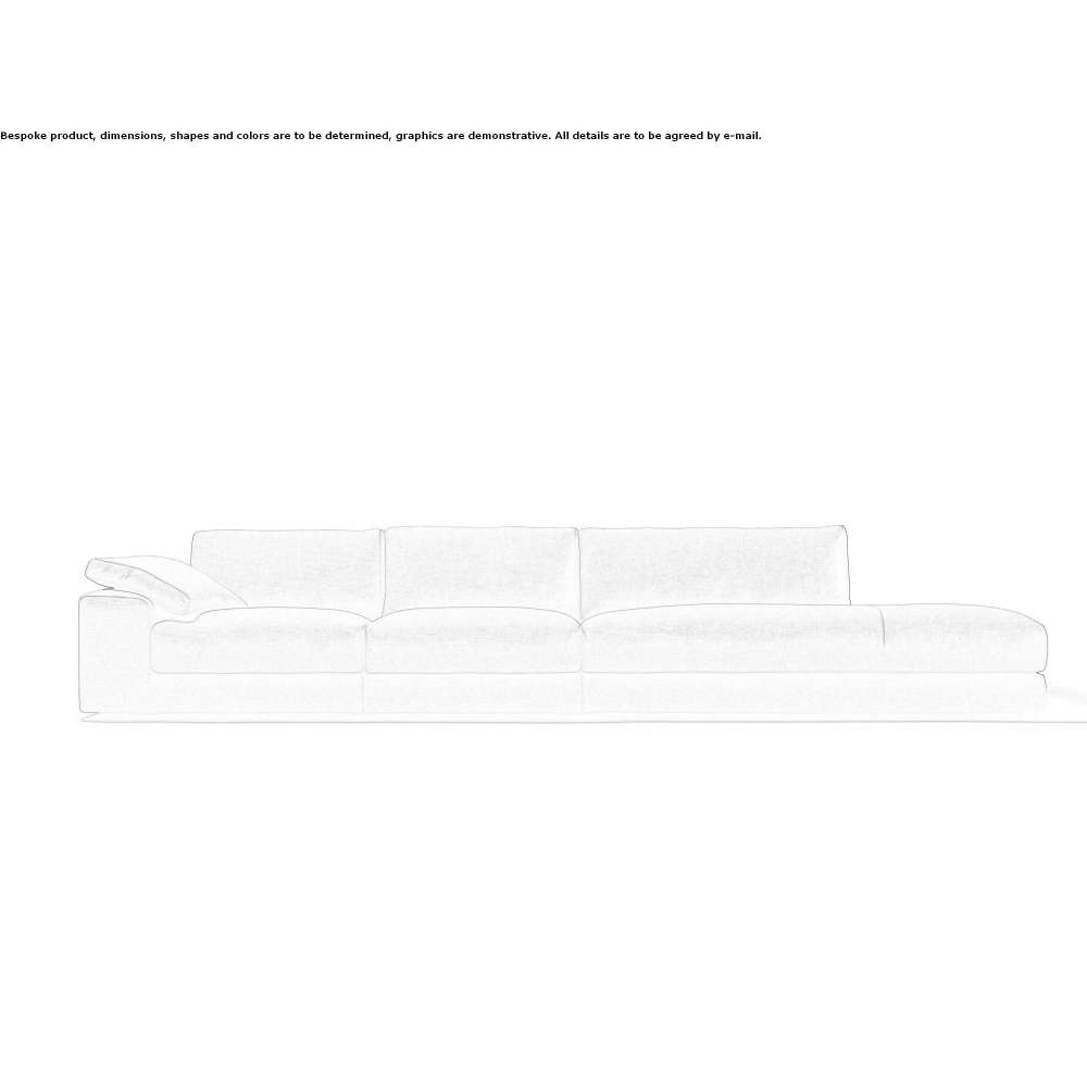 Tkanina Salone kol. 072. Konstrukcja z drewna jodłowego i topoli, ze skrzyżowanymi elastycznymi sprężynami pasowymi. Wyściółka ze spienionego poliuretanu o dużej gęstości, tapicerka z termoutwardzalnego włókna z elastyczną dżersejem. Poduszki siedziska wykonane w 100% z europejskiego gęsiego pierza, 10% z puchu, z centralną wkładką z poliuretanu o dużej gęstości, zamykane w niezależnych pomieszczeniach. Poduszki oparcia w 100% europejskie, kanałowe gęsie pióro, 10% puch, zamykane w niezależnych pomieszczeniach, z centralną wkładką z pianki z pamięcią kształtu. Całkowicie zdejmowane pokrowce z tkaniny, w wersji skórzanej tylko poduszki.