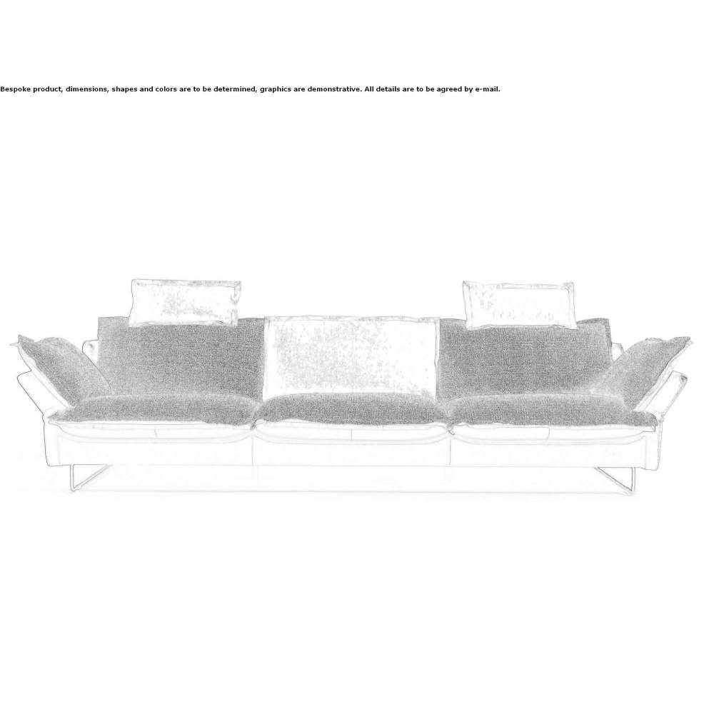 Zarówno oparcia, jak i podłokietniki są rzeczywiście dwustronne i zaprojektowane z konfigurowalną tapicerką, która łączy w sobie tkaninę i skórę. Wszystko podkreślone wyjątkowymi wykończeniami w postaci podwójnego skórzanego paska w kontrastowym kolorze.