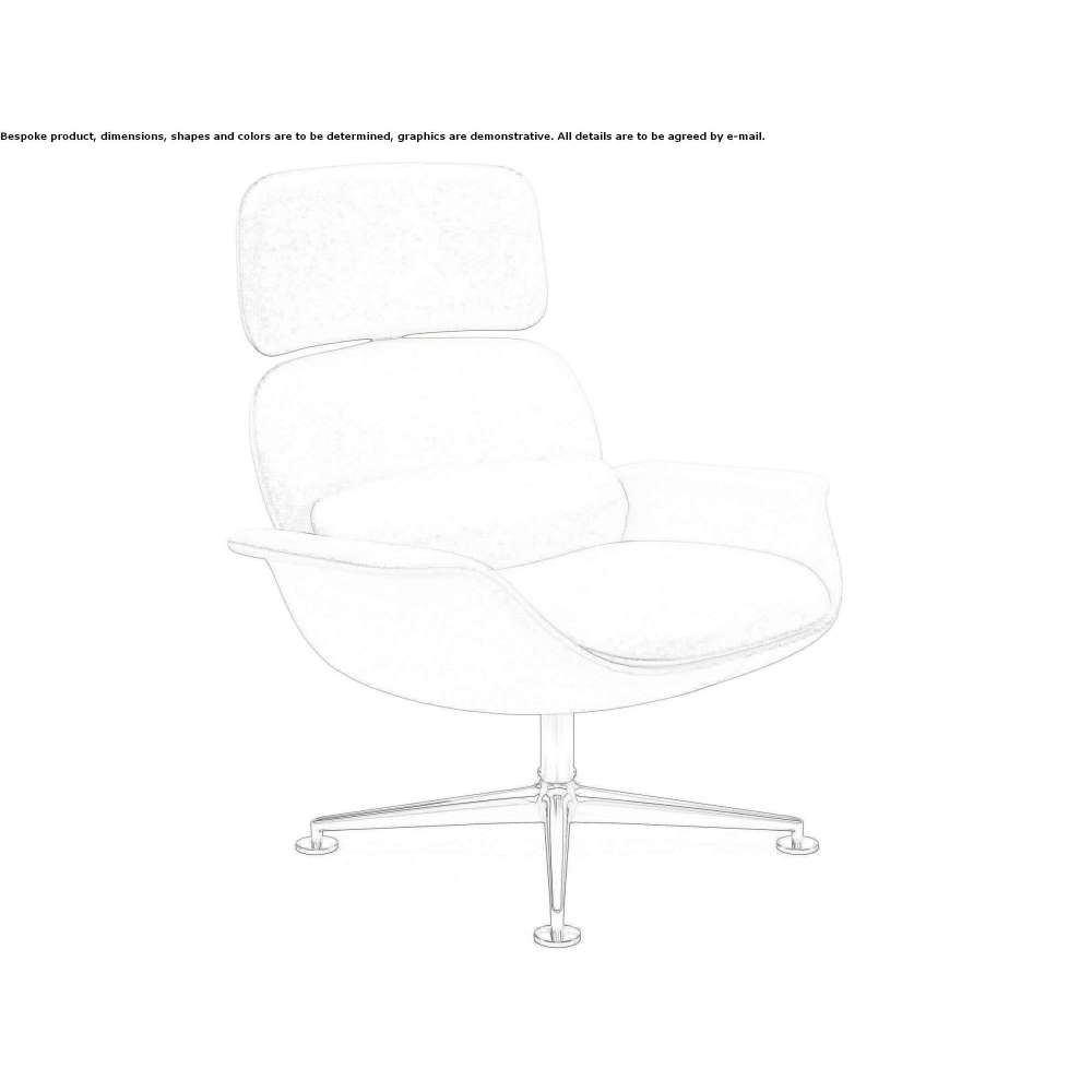 Obrotowe krzesło wypoczynkowe z podstawą z polerowanego aluminium lub węgla drzewnego.