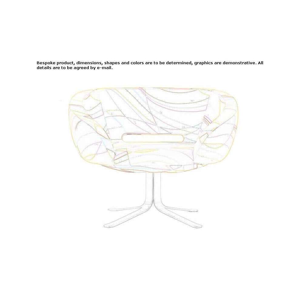 Rive Droite marki Patrick Norguet to fotel obrotowy. Stałe pokrycie z tkanin i skór z kolekcji lub z wybranych tkanin zaprojektowanych przez Emilio Pucci.