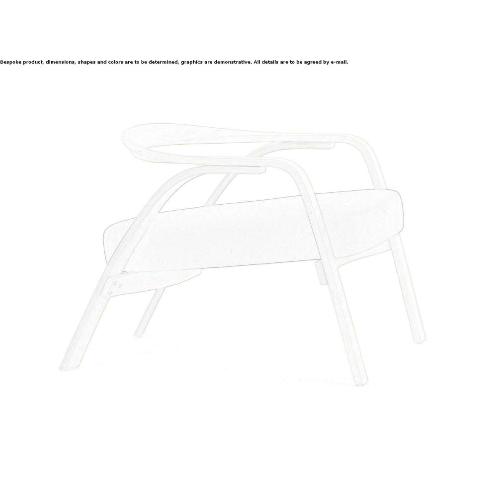 Zakrzywiony termicznie element drewniany, nie zmieniając nigdy swojego przekroju, a jedynie poprzez skalibrowane skręty, tworzy stopę, podłokietnik i oparcie jako wyjątkową poruszającą się linię przez przestrzeń.