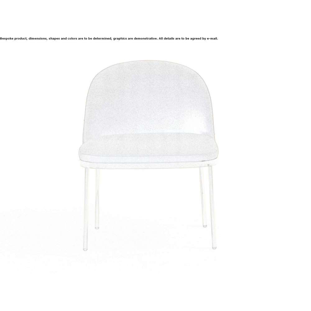 Nogi foteli są niezwykle smukłe, a chromowane lub malowana stalowa płyta stanowiąca podstawę siedziska ma minimalistyczny design przypominający kształt cienkiego pierścionka lub obrączki.