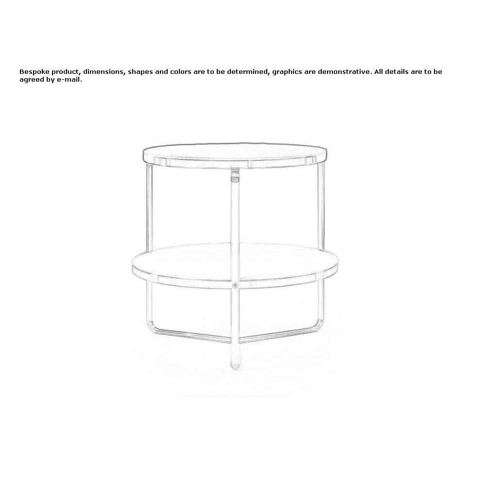 Ponadczasowy design tego praktycznego stolika bocznego ma swoje korzenie w szkole Bauhaus. Śruby łączące, wyraźnie widoczne na metalowej konstrukcji, podkreślają surowy, pozbawiony ozdób design, który wyróżnia ten stolik boczny. Występuje w kolorze chromu, satyny, polerowanego, czarnego chromu lub szampana. Trzy blaty – dwa w wersji okrągłej i jeden kwadratowy – mogą być wykonane z orzecha Canaletto lub jesionu Canaletto, bejcowane w szerokiej palecie kolorów lub lakierowane w szeregu wyrafinowanych odcieni.