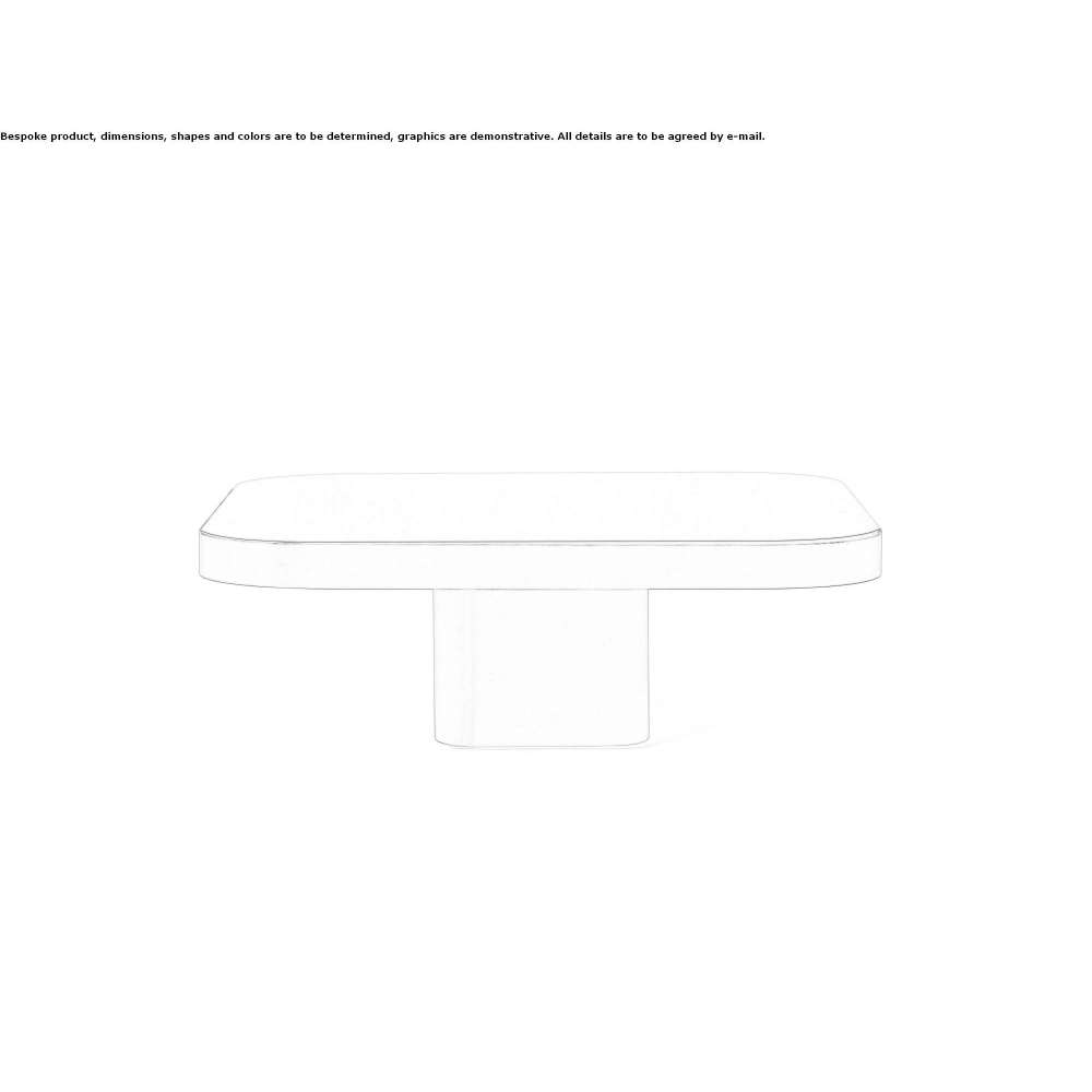 Stół z litego naturalnego mosiądzu, pokryty przezroczystym lakierem. Blat ze szkła kryształowego, lakierowanego na czarno lub blatu marmurowego w kolorze Nero Marquina lub Bianco Carrara, polerowanego i impregnowanego. Filcowe ślizgacze z regulacją wysokości.