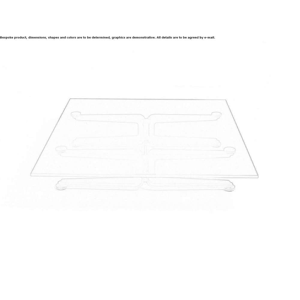 FLOYD-HI to stoły w dwóch różnych wysokościach (20 cm i 30 cm) i różnych rozmiarach (92x92 cm, 160x92 cm, 145x145 cm i 160x160 cm) złożone z przezroczystego szkła hartowanego o grubości 12 mm lub szkła dymionego o grubości 10 mm, z zaokrąglonymi narożnikami i ściętymi krawędziami. Wspornik z blachy stalowej wycinanej laserowo, lakierowanej proszkowo farbą epoksydową w kolorze brązu, z mosiężnymi płytami pod blatem i mosiężnymi nóżkami satynowanymi i wykończonymi przezroczystym matowym lakierem. Mocowanie blatu gwarantuje okrągły materiał termoplastyczny. Podstawa podłogowa zabezpieczona czarnymi nóżkami z PCV.