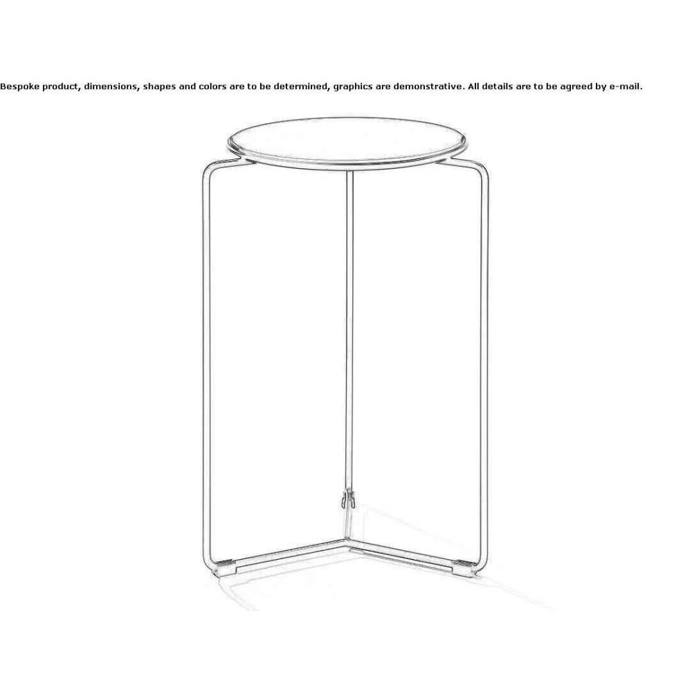 Okrągły, wysoki stolik boczny z laminatu i metalową podstawą Andrest