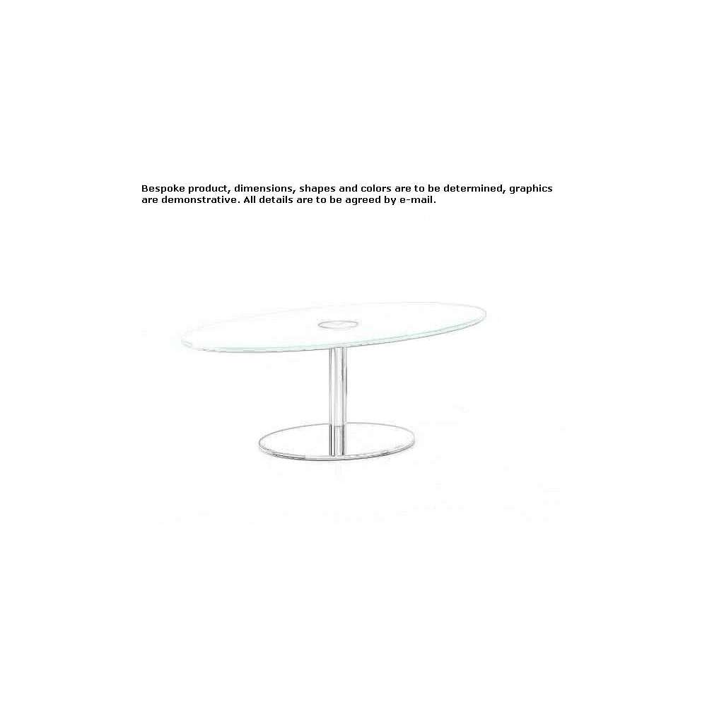 Basic 859 C - Stolik kawowy owalny ze szkła i stali do salonu.Basic - Stoły z metalową kolumną i okrągłą podstawą malowaną lub chromowaną. Dostępne różne wymiary blatu i różne wysokości kolumny. Dostępne z blatem z płyty MDF lub szkła hartowanego. Idealne do: kawiarni, barów, miejsc rekreacyjnych. Opcjonalnie: blat z drewna bukowego lub wengè.