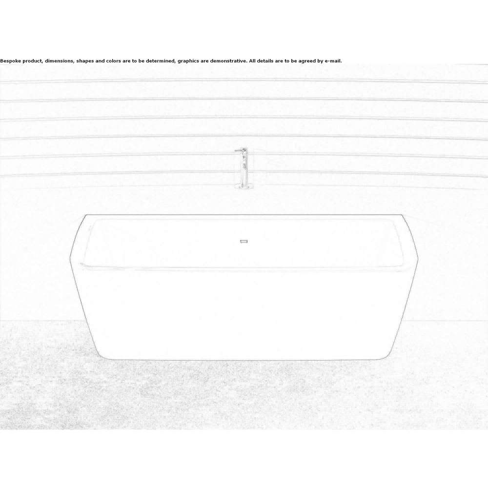 Wanna łagodzi swój prostokątny kształt z asymetrią, która dobrze komponuje się z oparciem o ścianę i które przesuwają liniowość jego kształtu.