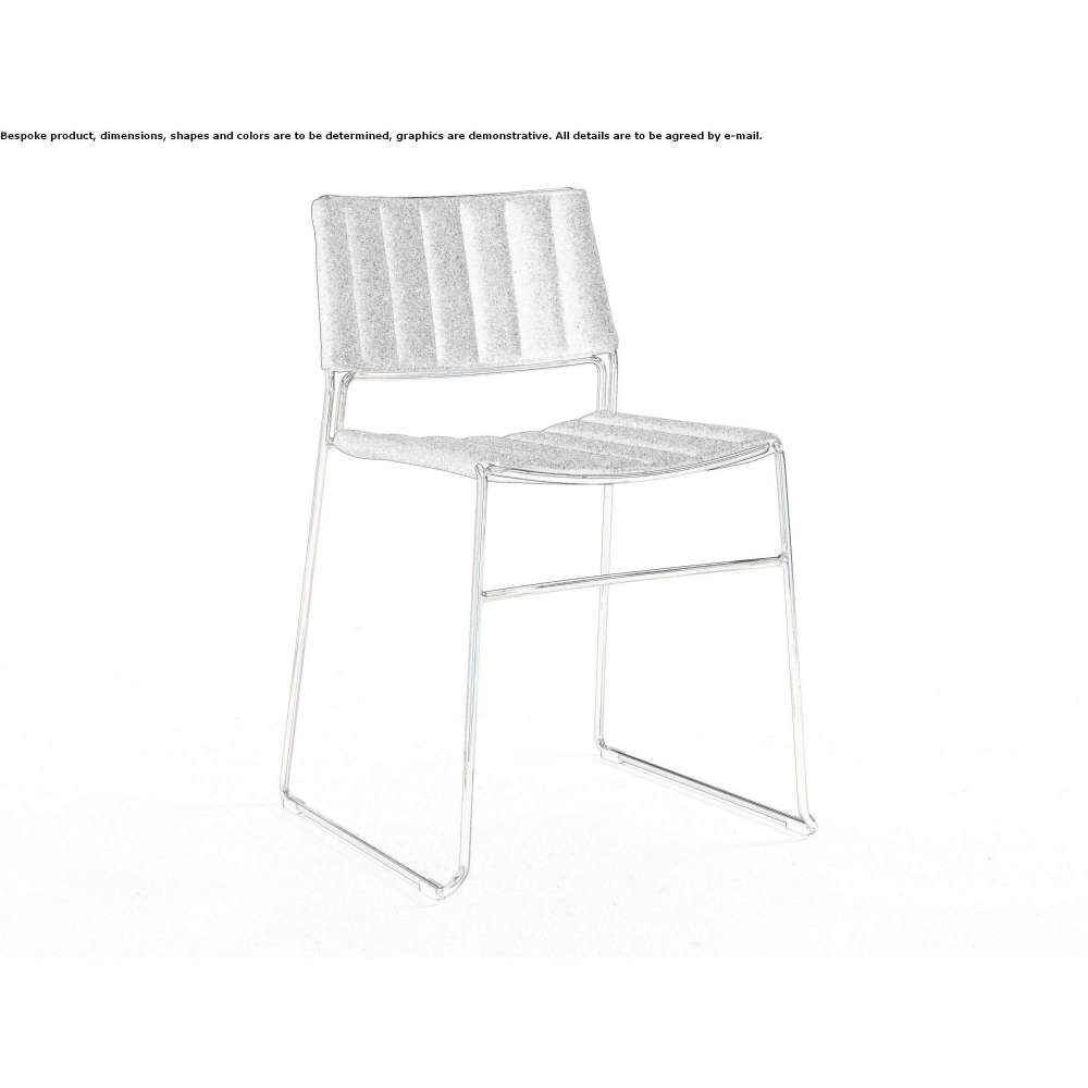 Krzesło z podstawą w kształcie sanek w kolorze różowego złota, czarnego niklu lub lakierowanej stali. Siedzisko i oparcie tapicerowane skórą, ekoskórą, tkaniną lub tkaniną na zamówienie.