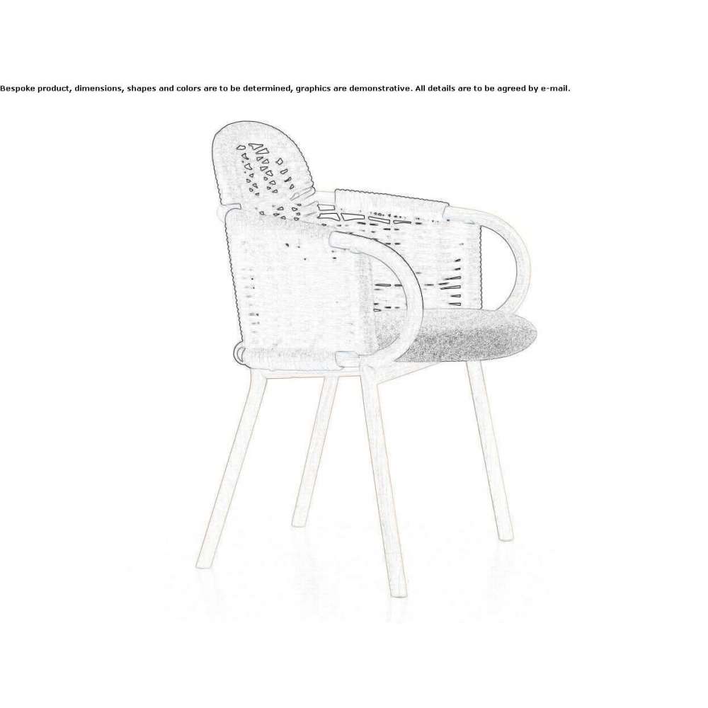Fotel do jadalni, oparcie i boki tkane z liny, siedzisko tapicerowane. Zantilàm to kolekcja z drewna jesionowego składająca się z fotela do jadalni i fotela wypoczynkowego z ramą z jesionu giętego na parze i oparciem tapicerowanym lub tkanym z liny żeglarskiej oraz stołkiem barowym z drewnianym lub tapicerowanym oparciem.