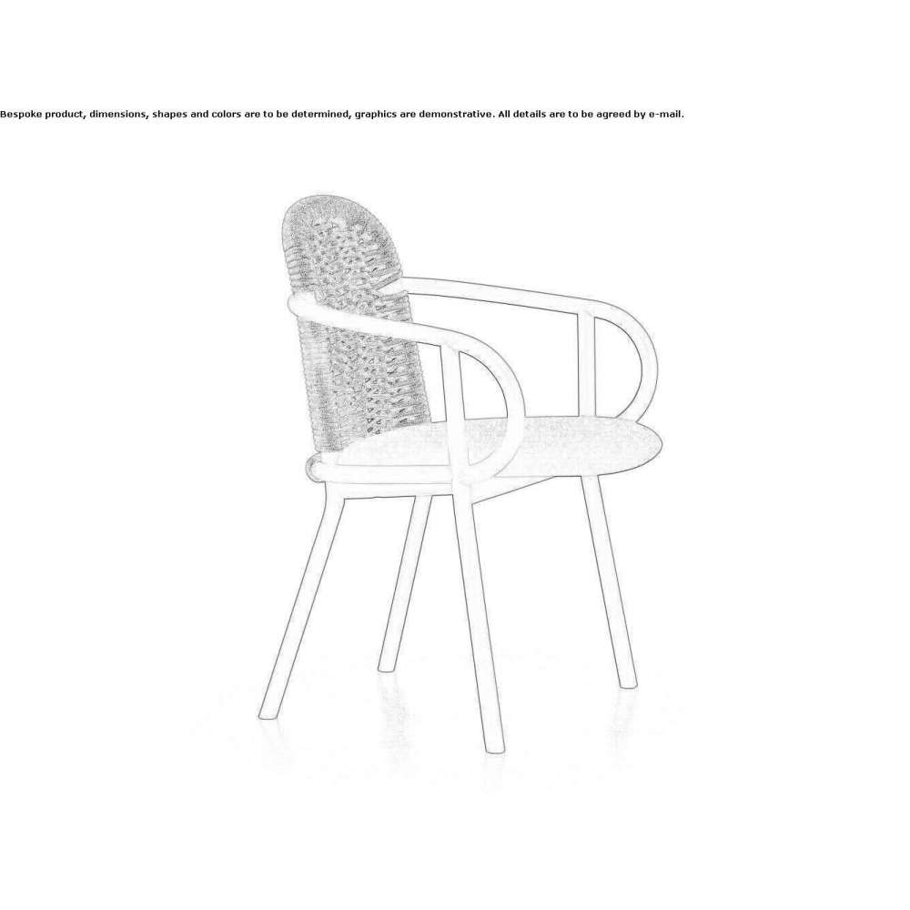 Fotel do jadalni, oparcie z plecionej liny i tapicerowane siedzisko. Zantilàm to kolekcja z drewna jesionowego, składająca się z fotela do jadalni i fotela wypoczynkowego z ramą z jesionu giętego na parze i oparciem tapicerowanym lub tkanym z liny żeglarskiej oraz stołkiem barowym z drewnianym lub tapicerowanym oparciem.