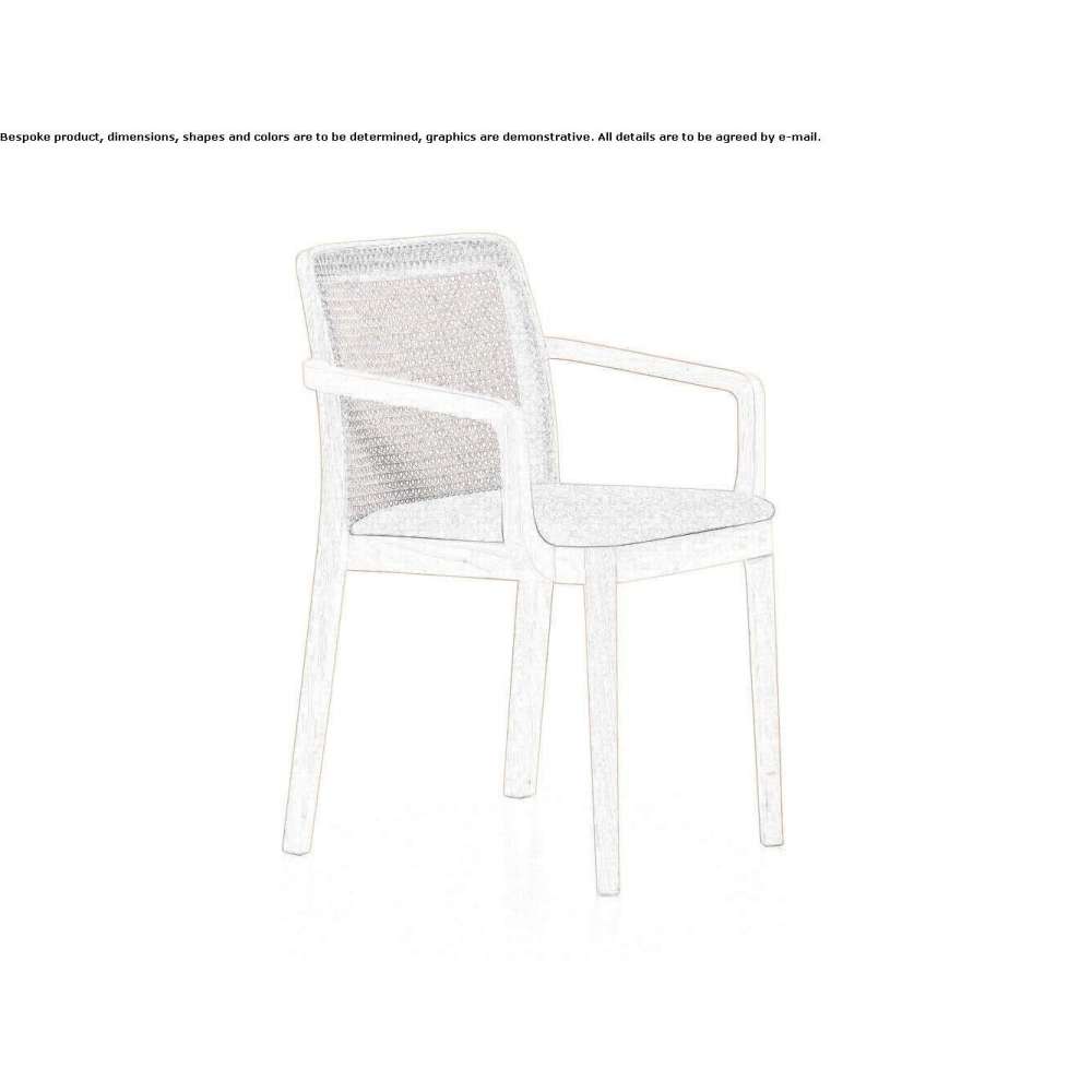 Fotel do jadalni sztaplowany, siedzisko tapicerowane, oparcie z trzciny i drewniane podłokietniki. Kolekcja z drewna jesionowego, składająca się z krzesła do jadalni i fotela z drewnianymi podłokietnikami, które można sztaplować. Oparcie dostępne w drewnie, tapicerce lub trzcinie. Tapicerka w tkaninie, winylu lub skórze.