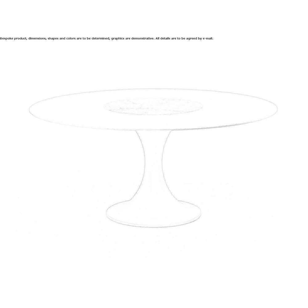Konstrukcja stołu, wykonana z kompaktowego poliuretanu malowanego na różne kolory, wspiera okrągły blat proponowany w trzech rozmiarach (średnice 140, 160 i 180 cm).
