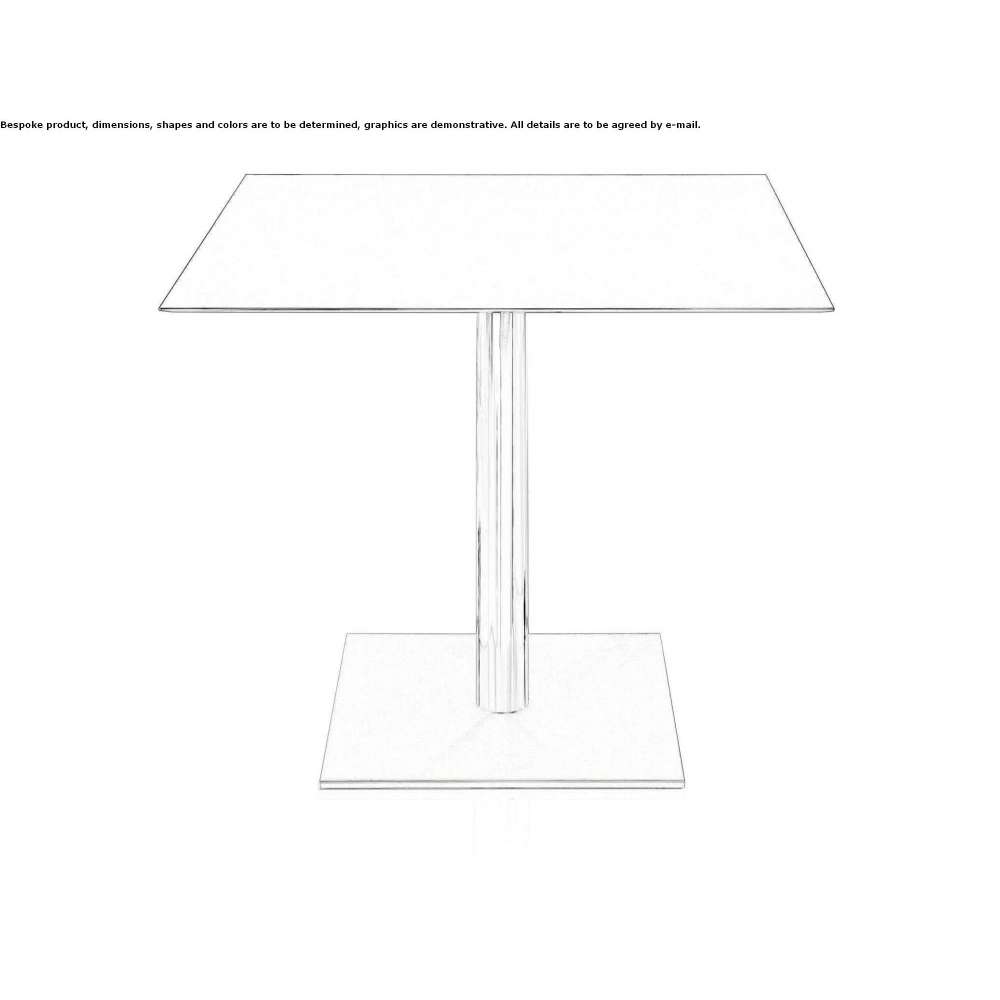 Linia stołów kontraktowych o różnych kształtach i rozmiarach, do użytku wewnętrznego. Wersje: H 730 mm i 1100 mm, blaty kwadratowe lub okrągłe od 600 do 800×2000 mm Materiały i kolory: Podstawa stalowa polerowana lub satynowana. Blaty: Alucompact, HPL, Solid Core, szkło w kolorze białym, czarnym, czerwonym. Laminat, melamina, żywica z wzornika. Stół o stałej lub regulowanej wysokości z podstawą ze stali nierdzewnej o różnych kształtach i wymiarach, z wykończeniem polerowanym lub satynowanym i regulowanymi zatyczkami zapewniającymi płaskość. Na zamówienie dostępne blaty witrażowe lub blaty z litego laminatu z krzyżakiem aluminiowym i mechanizmem uchylnym.