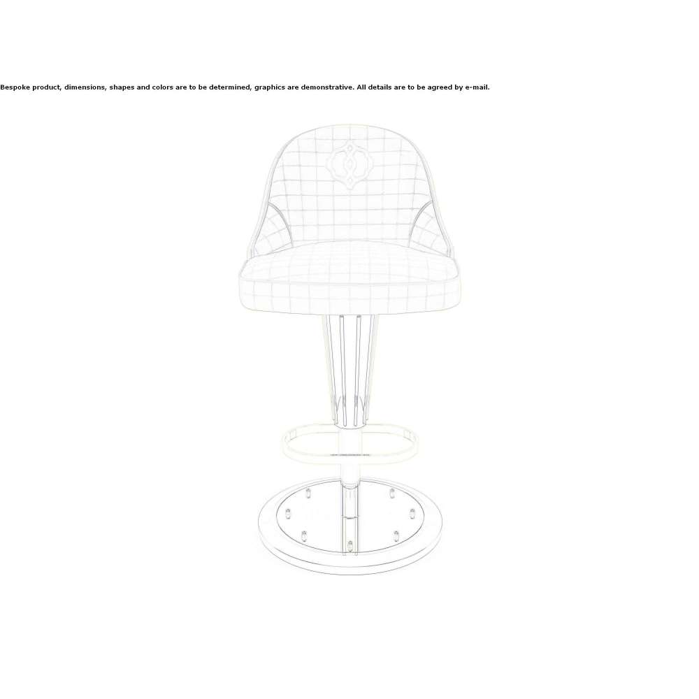 Ophelia to stołek barowy z ramą z litego drewna. Centralna podstawa z metalu i drewna bukowego z mosiężną dekoracją. Pikowana część wewnętrzna; Zewnętrzna dekoracja gorsetu ze skóry. Wyściółka z pianki poliuretanowej o różnych gęstościach. Wykończenie: skóra piaskowa / czekolada / złoto
