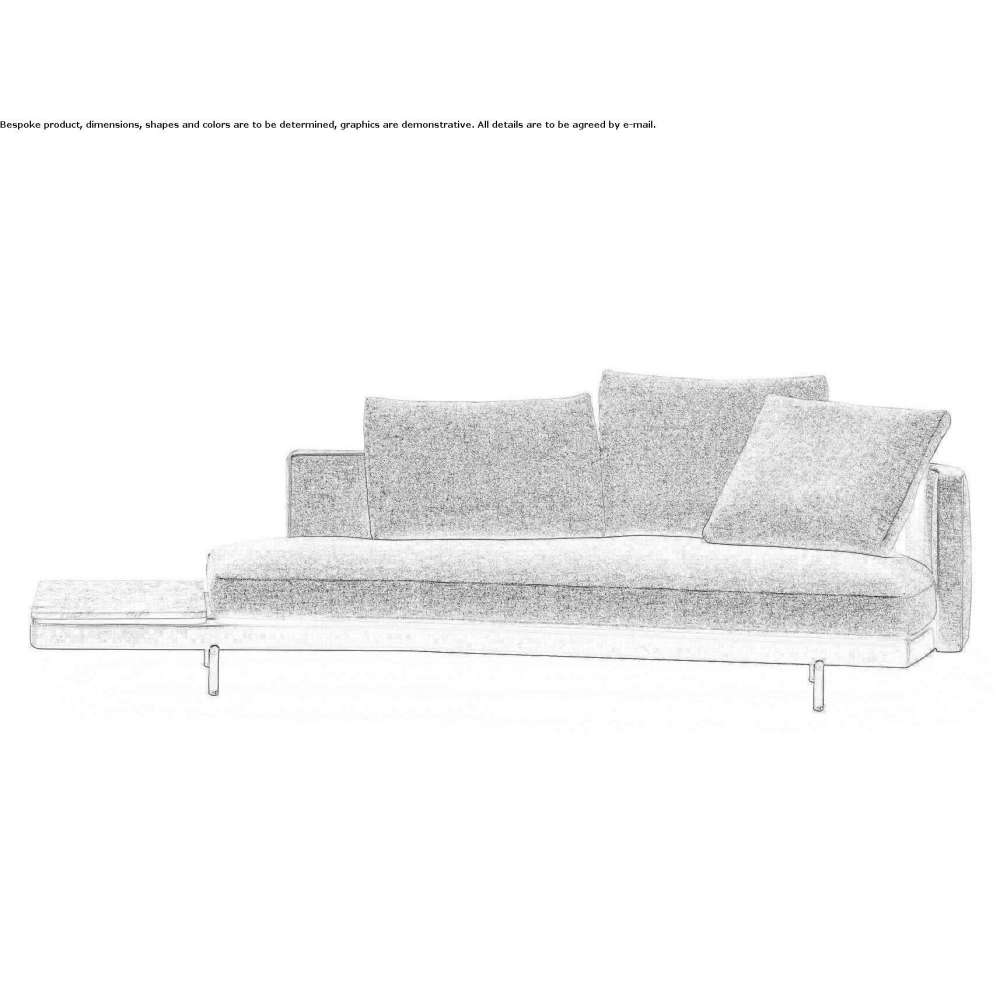 Pochylona sofa Torii, z kombinacją dwóch różnych głębokości i wysokiego lub niskiego oparcia, jest dostępna również w wersji z blatem z marmuru Calacatta lub Stone Grey z matowym wykończeniem lakierem poliestrowym, wykonanym po dokładnym zbadaniu jej proporcji, grubości i szczegóły konstrukcyjne, dzięki czemu idealnie komponują się z siedziskiem, również z estetycznego punktu widzenia. Podobnie jak wszystkie tapicerowane elementy systemu, pochyloną sofę z marmurowym blatem można dostosować do własnych potrzeb, wybierając tapicerkę – w 100% z tkaniny lub skóry, albo w tkaninie ze skórzaną podstawą – i można ją wyposażyć w skórzany pojemnik na czasopisma, wykonany z wysokiej jakości techniki robienia bagażu. Oprócz sofy pochylonej, ławka Torii dostępna jest również w wersji z blatem marmurowym. W rodzinie Torii znajdują się sofy - z wysokim lub niskim oparciem i liniowym kształtem, zaokrąglonymi przy ramionach - sofy pochylone z kombinacją dwóch różnych głębokości , fotele oraz małe fotele do salonu i jadalni, otomany, stoliki kawowe i konsole. Zróżnicowana gama produktów umożliwia zaprojektowanie elastycznego układu, w którym poszczególne elementy można również łączyć, aby stworzyć mocny efekt wizualny jedność. Wąskie oparcie z pionowym pikowaniem oraz lamówką z ekoskóry i eko-nabuku biegnącą wzdłuż obwodu poduszki, podkreślającą jakość wykonania couture. Wszystkie tapicerowane elementy systemu można dostosować do indywidualnych potrzeb. wybierając pokrycie: 100% tkanina lub skóra, albo tkanina ze skórzanym spodem.