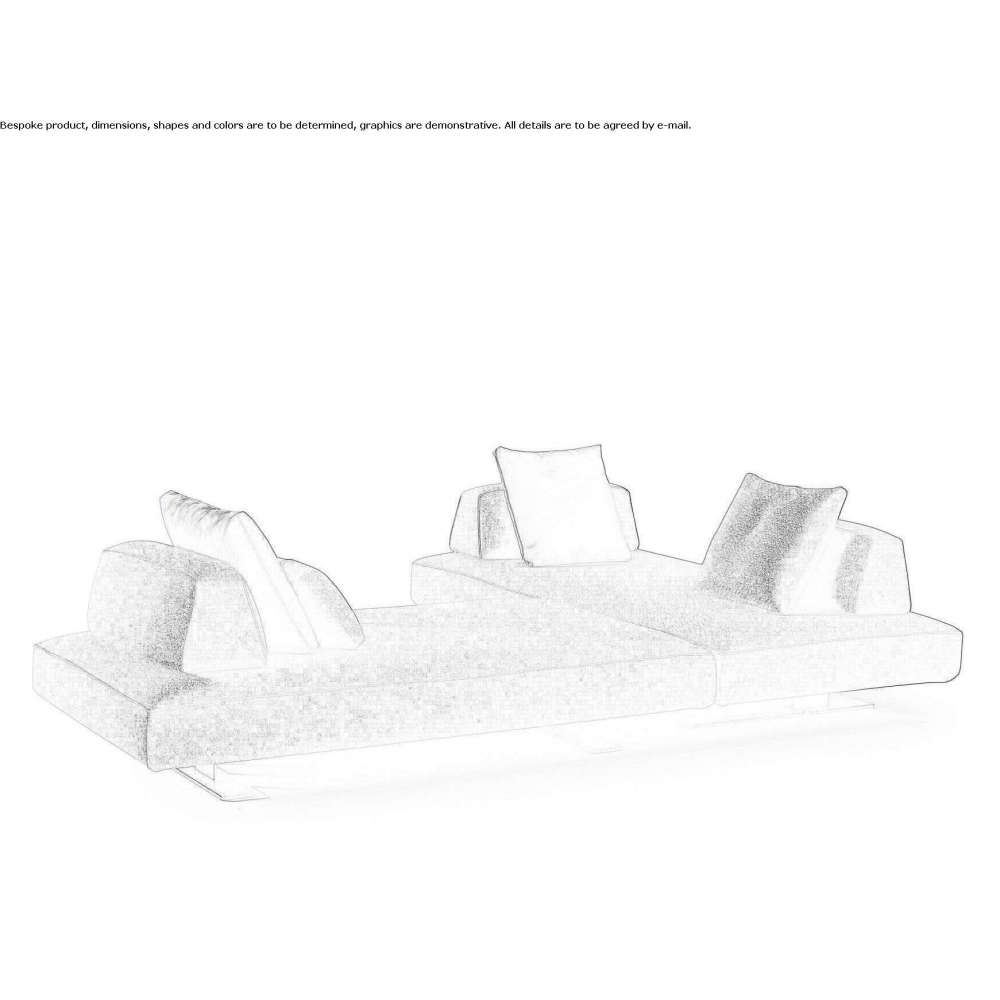 Nowe trapezowe kształty podstaw są umieszczone obok siebie i tworzą dynamiczne i funkcjonalne przestrzenie. Podstawy są symetryczne, odwracalne i można je łączyć z elementami liniowymi. Nowe ruchome oparcie po złożeniu może pomieścić dwie osoby i tworzy przyjemną grę objętości z podstawami.
