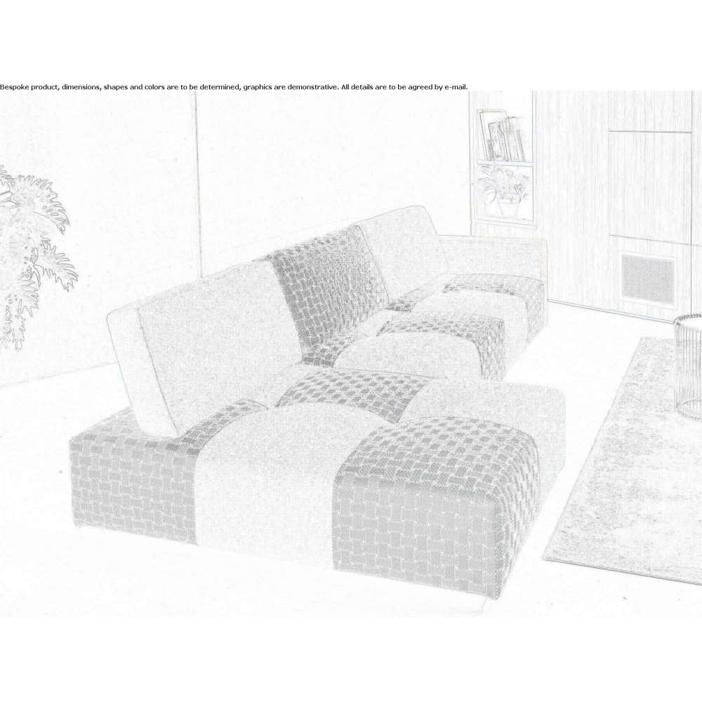 Modułowa sofa materiałowa ze zdejmowanym pokrowcem i szezlongiem.