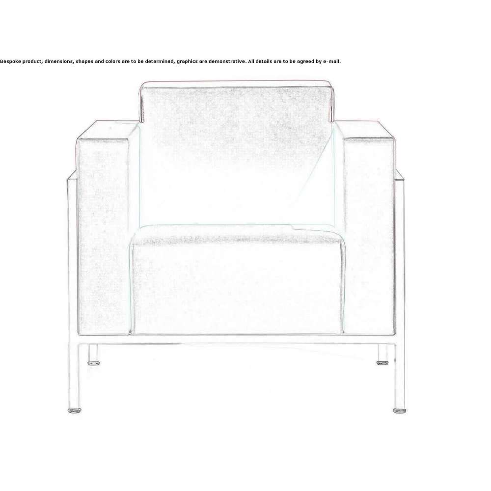 Fotel i 2-3-osobowa sofa do poczekalni i rozmów z zewnętrzną konstrukcją stalową, wykończenie epoksydowe w kolorze satynowanego aluminium.