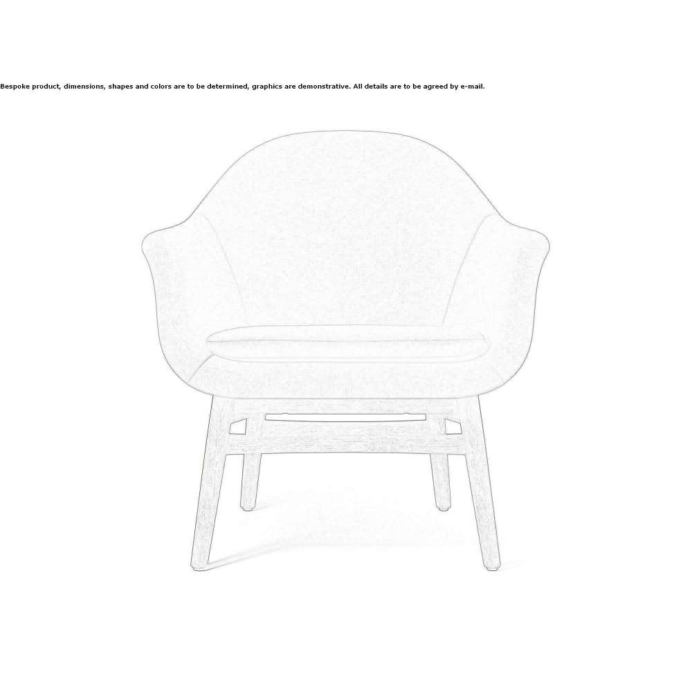 Krzesło z podstawą z litego drewna z naturalnego, barwionego na ciemno lub czarnego dębu lub orzecha z widoczną stolarką. Rama o niskim nachyleniu ma zaokrąglone nogi i subtelne detale stolarki, a obszerna skorupa ma szerokie oparcie, ustawione pod kątem dla wygody i podparcia ciała, zapewniając jednocześnie przestrzeń do relaksu. Odpowiednia poduszka tapicerowana.
