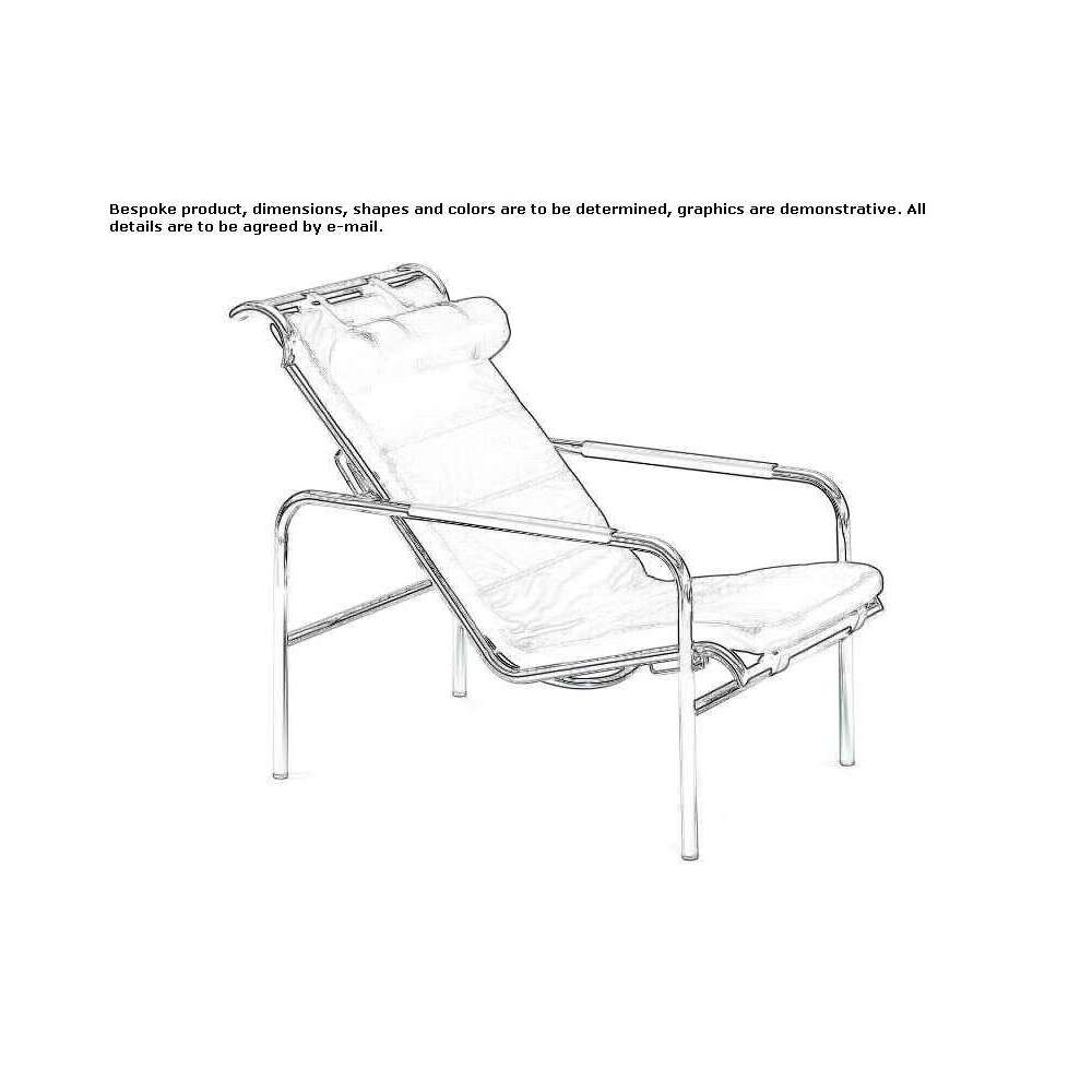 GENNI – Fotel wypoczynkowy. Rama ze stali chromowanej lub z wykończeniem naturalnym lub czarnym niklowo-satynowym lub malowana na czarno. Zawieszenie na sprężynach stalowych. Regulowane siedzisko w dwóch pozycjach. Tapicerka poliuretanowa. Skórzana osłona.