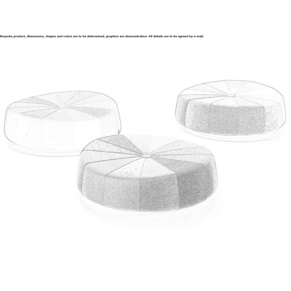 nieformalnego wykorzystania go. Dostępna w trzech formach: od pufy o średnicy 60 cm, po wyspy o wymiarach 110 cm i 180 cm, wszystkie podzielone na tęczowe lub tonowane segmenty. Drewniana rama jest wyściełana nieodkształcalną pianką poliuretanową o zmiennej gęstości i wykończona włóknem poliestrowym. Oprócz dwóch tkanin wybranych dla wersji wielobarwnej i tonowej, Windmills