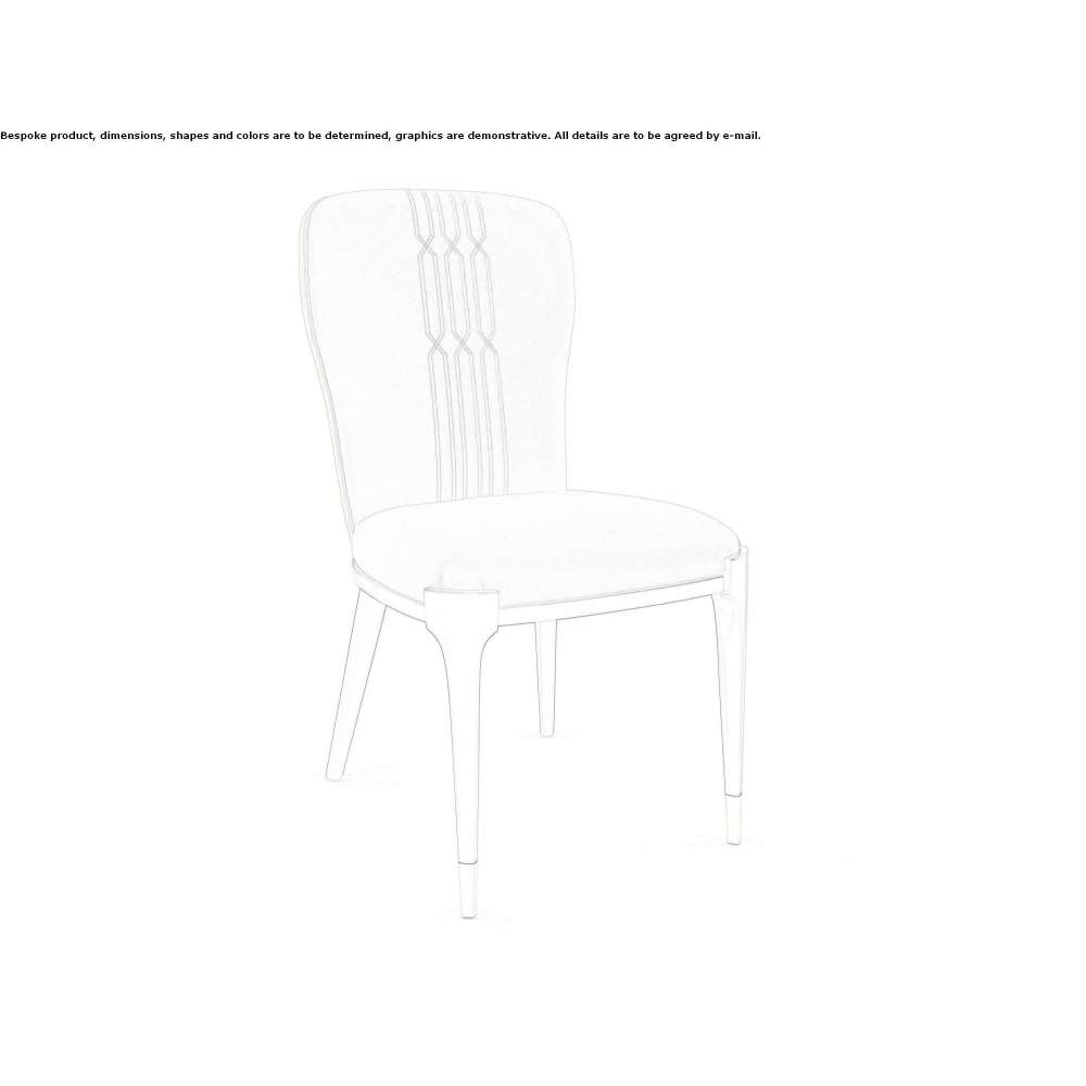 Celine to krzesło o konstrukcji z litego drewna. Tył i część zewnętrzna haftowana. Wyściółka z poliuretanu o różnej gęstości, pokryta skórą.