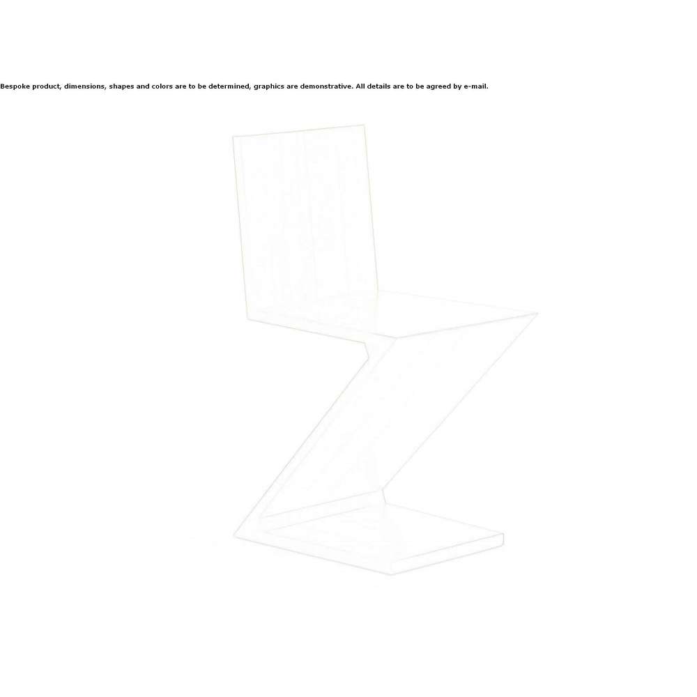 Zaprojektowane przez Gerrita Rietvelda, krzesło to stanowiło wczesny przykład siedziska na wspornikach i składa się z czterech drewnianych desek połączonych przegubowo, tworząc niezwykle przyciągający wzrok przykład niestabilnej konstrukcji. Unikając tradycyjnej sekwencji nóg i oparcia siedzenia, Rietveld stworzył drewnianą wstęgę tworzącą kształt litery Z. Kunszt rzemieślniczy stolarzy Cassiny widać w wykonaniu połączeń na jaskółczy ogon, które dodają piękna temu elementowi. Estetyczną wyjątkowość tego mebla widać szczególnie dobrze w wersji kolorowej, a jego wykończenie z otwartymi porami podkreśla żyły drewna z przodu i po bokach. To wykończenie odzwierciedla szereg wariacji na temat autorstwa Rietvelda, mających na celu podkreślenie relacji pomiędzy liniami pionowymi, ukośnymi i poziomymi.