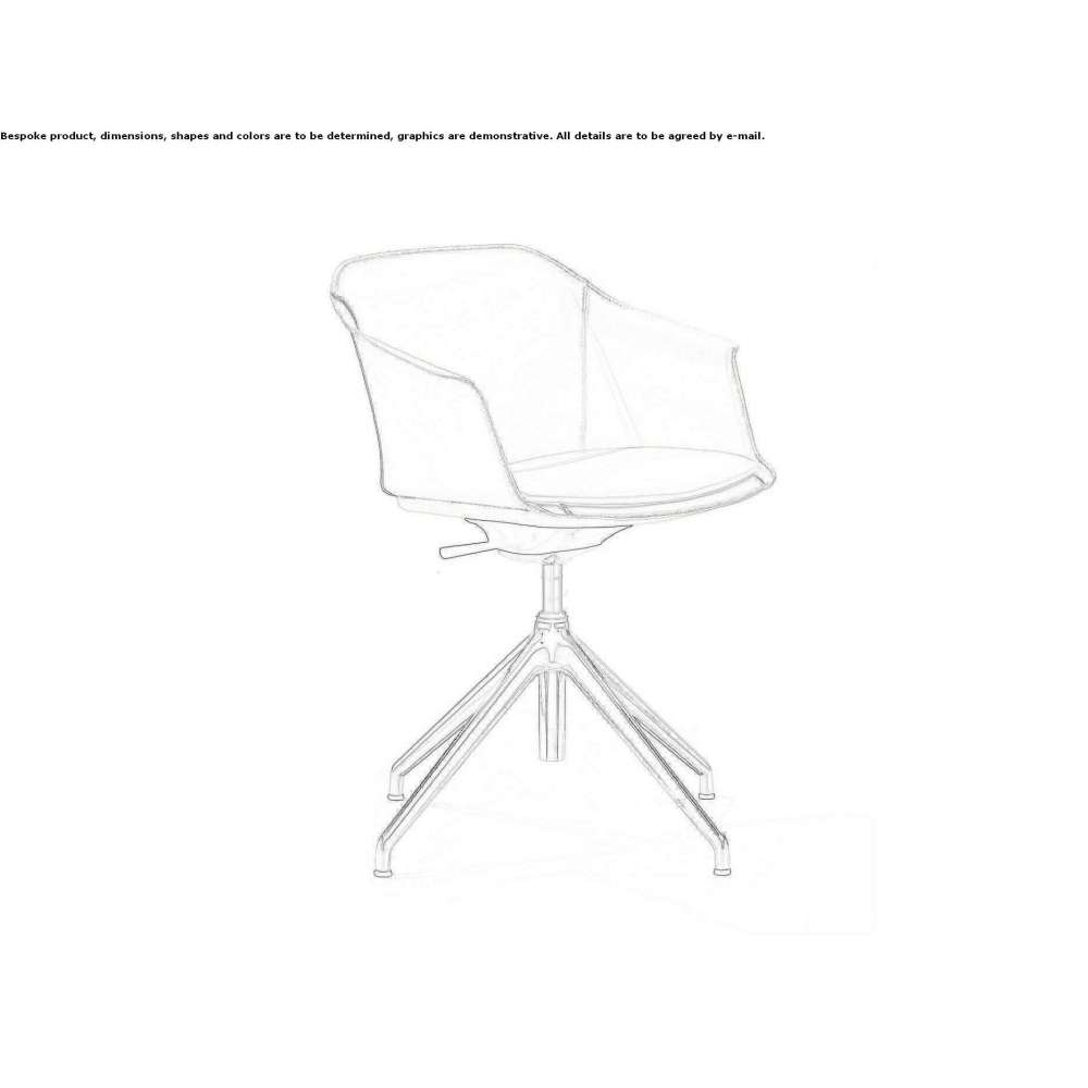 Eva to krzesło obrotowe z 4-ramienną podstawą z regulacją wysokości, skorupą ze sztywnego poliuretanu, cienką poduszką siedziska zintegrowaną lub wyściełaną i pokrytą miękką skórą licową, filcem, innowacyjnym materiałem lub materiałem dostarczonym przez klienta.