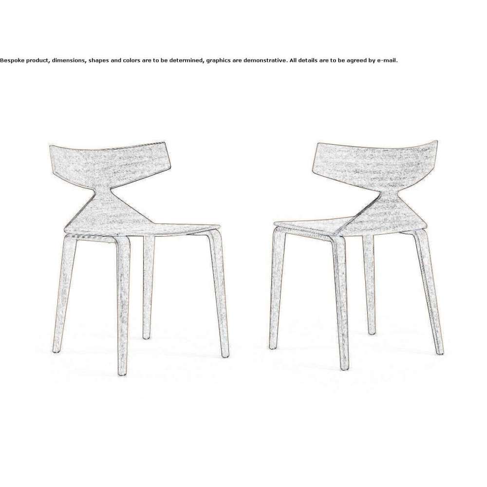 Zakrzywione krzesło ze sklejki z podstawą na 4 nogach, dostępne w różnych kolorach. Na zamówienie dostępne są ślizgacze z wkładką filcową do podłóg drewnianych. Saya to znak, gest, znak graficzny, odlany w drewnie, aby zakończyć przestrzeń niczym podpis. Płynna linia, ciepły materiał, jego sylwetka jest odważna i efektowna. Suma to więcej niż części: Saya inspiruje integrację w różnorodnych środowiskach, od domu po umowę. Saya jest dostępna jako krzesło i stołek w dwóch wysokościach (65 i 75 cm - 19 1/2'' i 20 3/4''). Tapicerowane muszle – lub z tapicerką tylko na poduszce nałożonej na siedzisko – są dostępne dla wszystkich krzeseł i stołków Saya. Stołek jest wyposażony w podstawę w kształcie sanek ze stali chromowanej, natomiast krzesło ma podstawę w kształcie sanek lub 4 nóg, z drewna lub stali chromowanej.