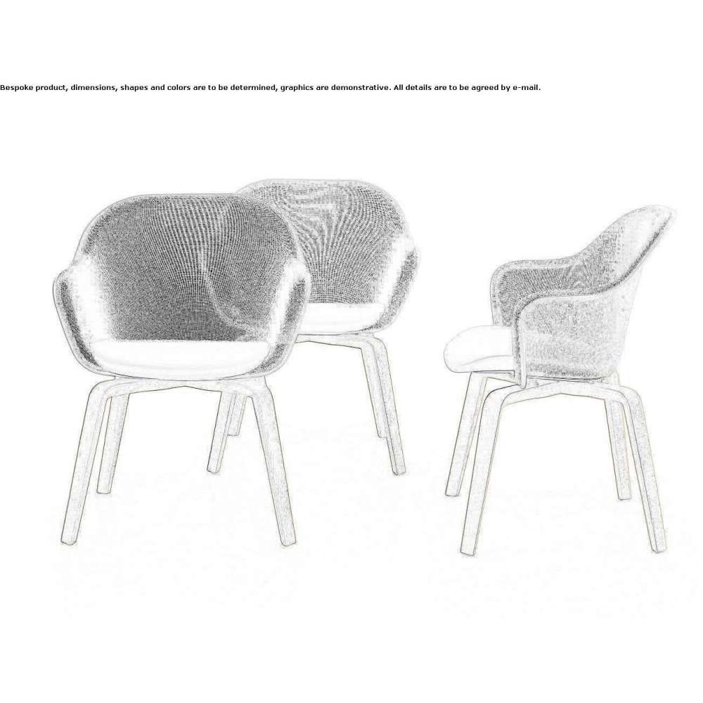 Czteroramienna drewniana podpora Iuta'14 łagodzi kontury stalowej profilowanej ramy z siatki, dostępnej w dwóch wersjach monochromatycznych, w kolorze brązowo-niklowego lub w kolorze złamanej bieli. Drewniana konstrukcja dostępna jest w czterech różnych odcieniach.