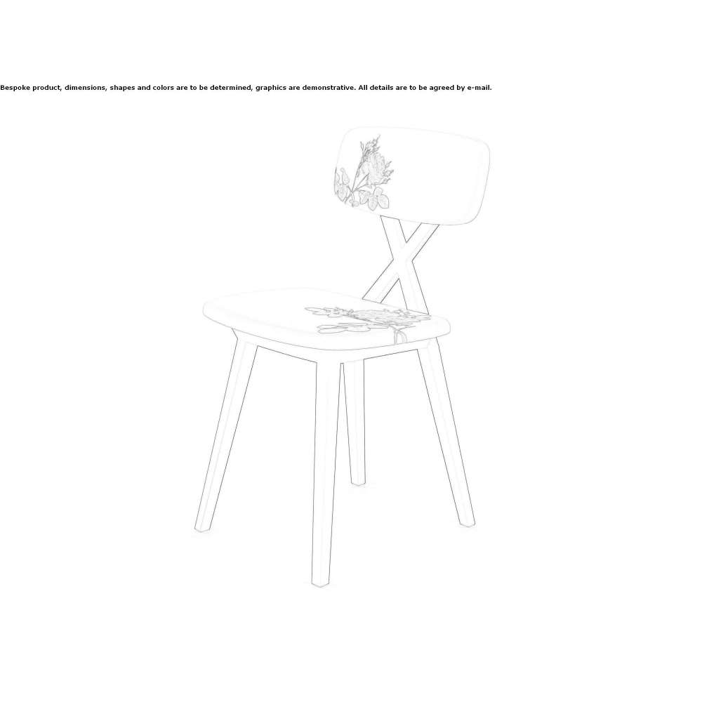 Materiał: polipropylenJeżeli grafika zazwyczaj wymaga absolutnej czerni, celem projektanta jest podkreślenie znaczenia X-w oparciu krzesła, w który nie ingeruje żadna inna linia, ale jednocześnie aby to osiągnąć bardziej dynamiczny, z siedziskami i oparciami tapicerowanymi tkaninami w jasnych kolorach i łatwymi do wymiany. Stół jest rozkładany i może mieć powierzchnię drewnianą lub jednomateriałową z czarnego tworzywa sztucznego.