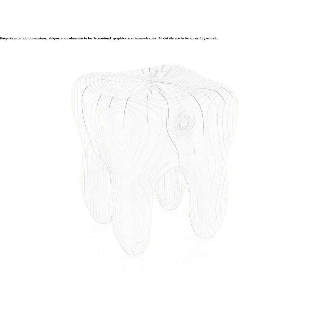 Molaire to solidny, pachnący stołek z drewna cedrowego, wyrzeźbiony z jednego bloku imitujący ząb poza łuską.