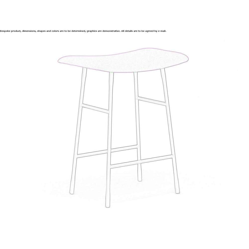 HINGE to stołek o dwóch różnych wysokościach, 47 cm i 65 cm. Konstrukcja podstawy ze stali toczonej z epoksydową powłoką proszkową w kolorze białym RAL – K7 9010 i czarnym RAL – K7 9017, z regulowanymi końcówkami.
