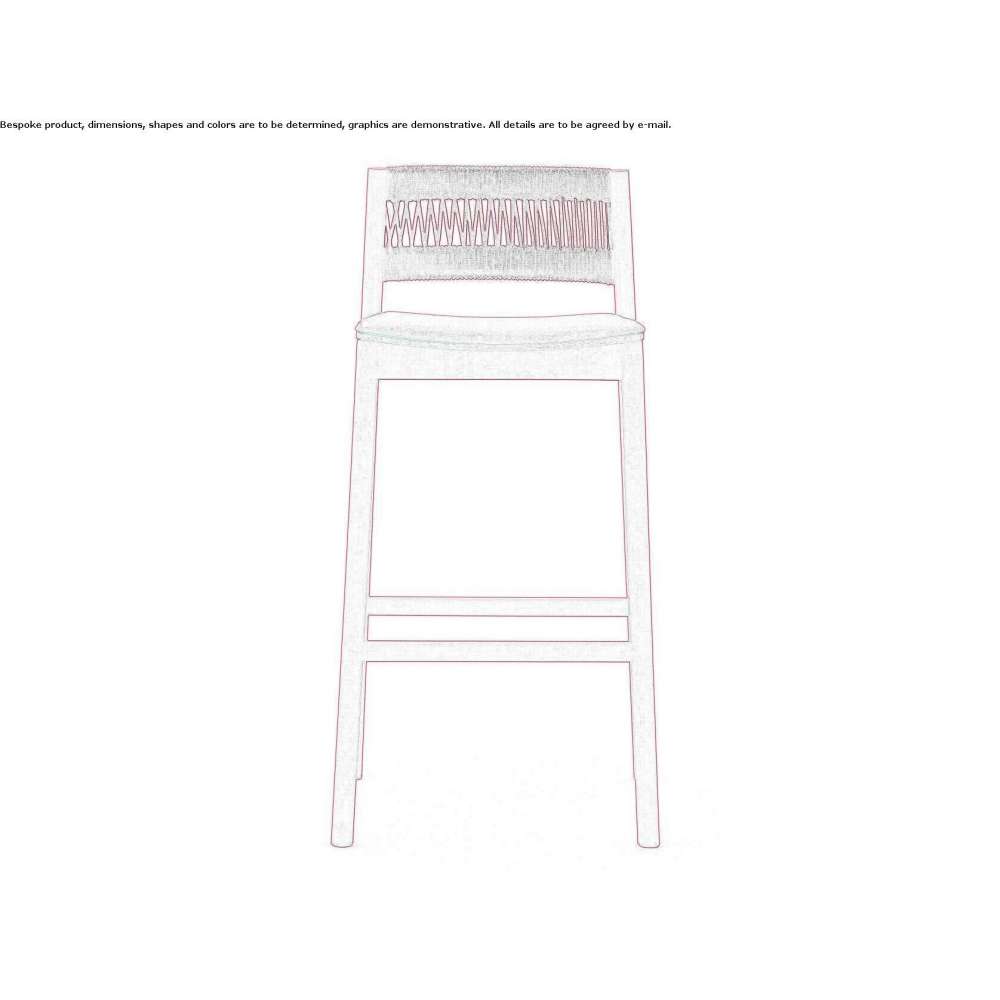 Stołek barowy z bejcowanego lub lakierowanego drewna bukowego, z tapicerowanym siedziskiem i oparciem tkanym z liny morskiej. Materiały: drewno bukowe, tkanina, sztuczna lub prawdziwa skóra, lina morska.Load czerpie inspirację ze skandynawskiego designu, tworząc nową koncepcję współczesności , jest poszukiwaniem nowych relacji wymiarowych i ma na celu nadanie krzesłu nowego nastroju.