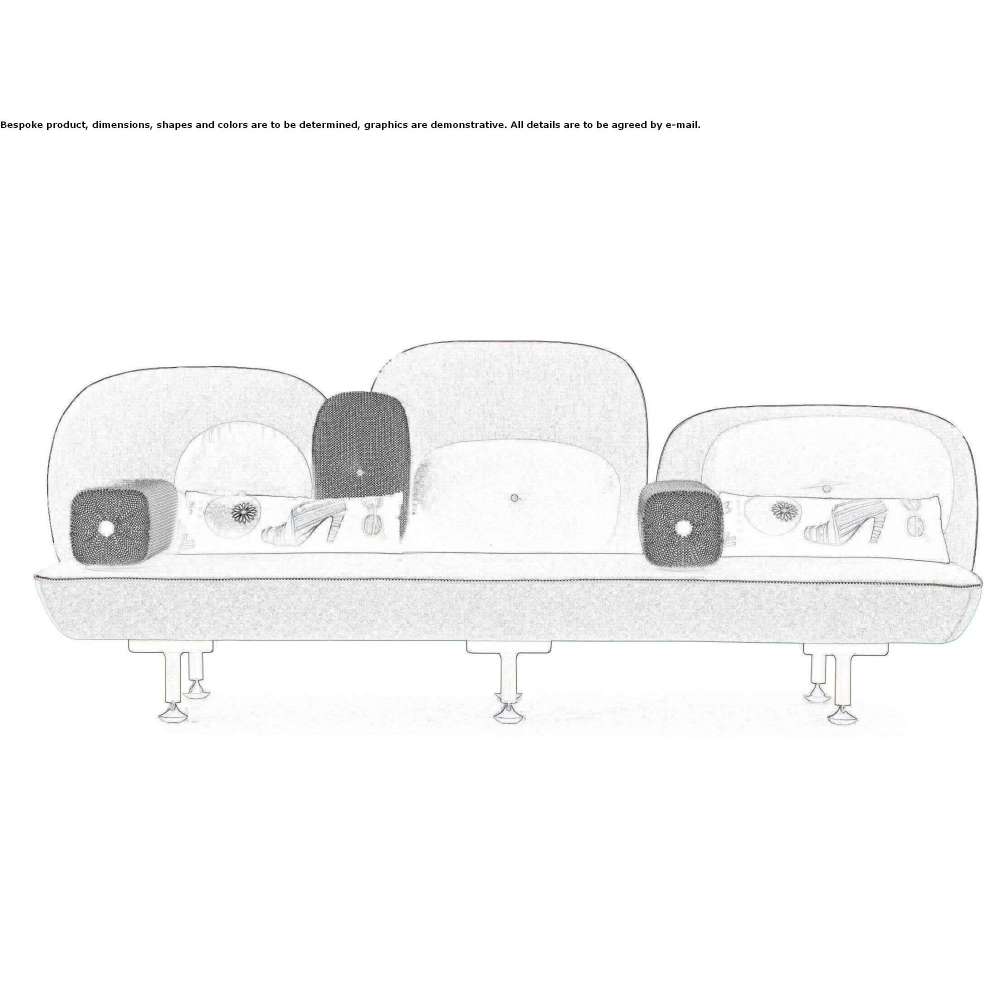 My Beautiful Backside to kolekcja siedzisk, których oparcia stanowią kompozycję kolorowych, pływających poduszek o różnorodnych kształtach. Im szersze siedzisko, tym więcej poduszek możesz mieć. Używanie przez nas dużych symboli, takich jak guziki na oparciach poduszek, to sposób na przekazanie różnorodnych komunikatów. Symbole te umożliwiają również personalizację każdego krzesła, czyniąc je wyjątkowym, tak jak można dodać drobne, wyróżniające akcenty do elementu garderoby. Górny materac pokryty jest kompozycją różnych przedmiotów, a ponieważ czerpie inspirację z nowoczesnej księżniczki, jest haftowany w kolorze złotym i srebrnym.