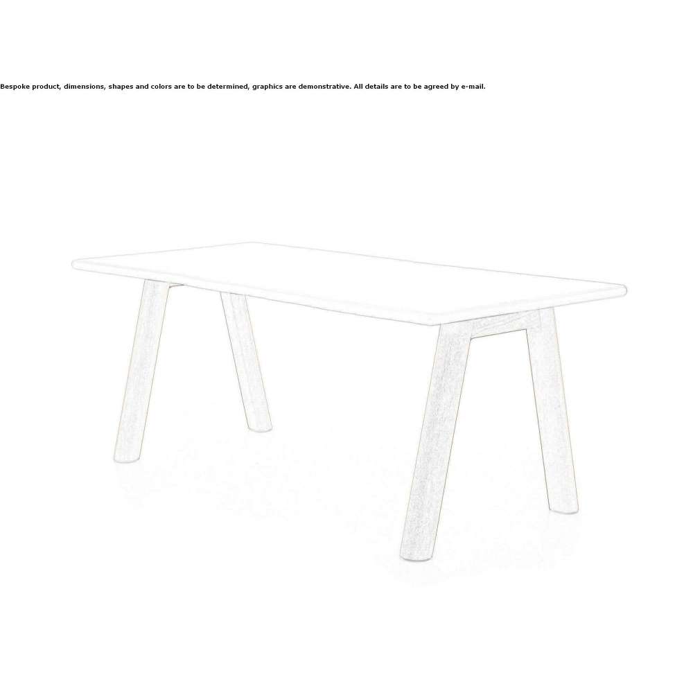prostokątny blat z zaokrąglonymi narożnikami i krawędziami wsparty jest na parze nóg tworzących literę „A”, składających się z dwóch cylindrycznych słupków, lekko „odciętych” od wewnątrz: ten typ przekroju ma za zadanie ułatwić dopasowanie poprzeczki pomiędzy nogami.