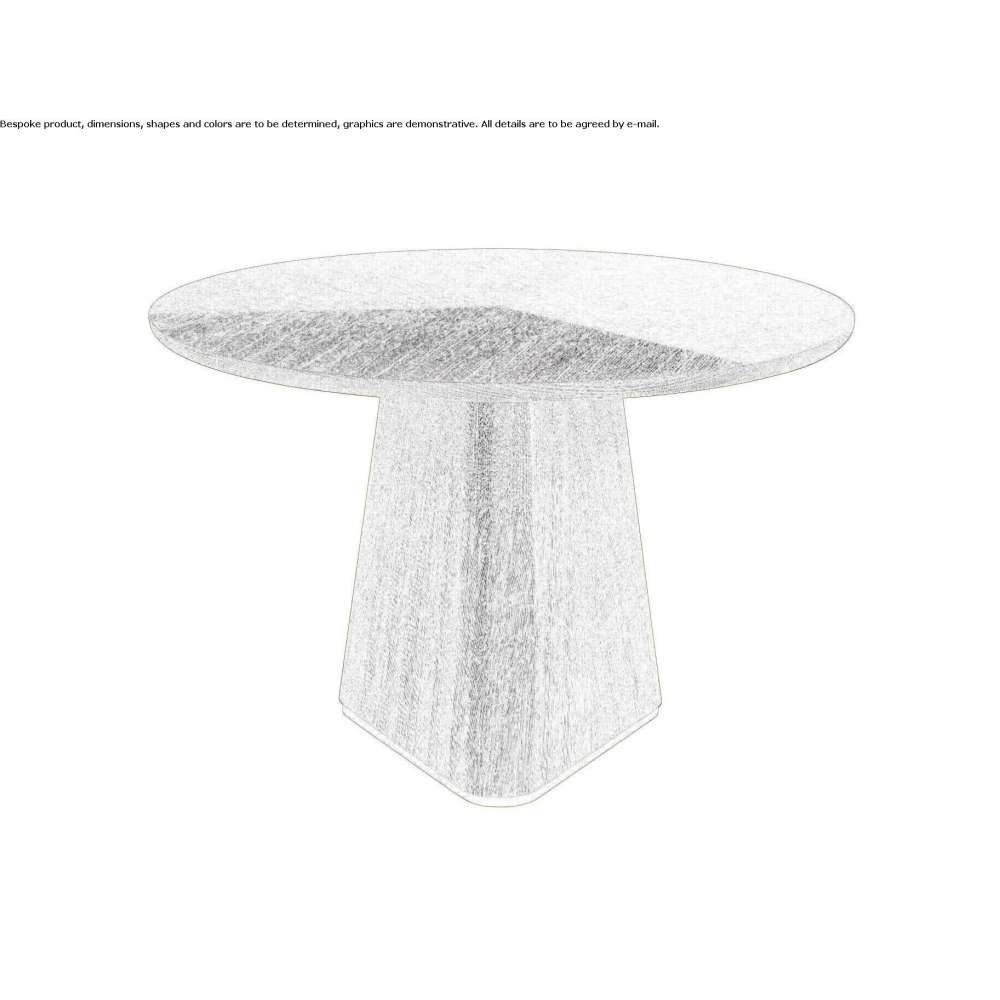 TOFU V to drewniany stół do jadalni z okrągłym blatem, zaprojektowany przez Sedę Yetkiner.