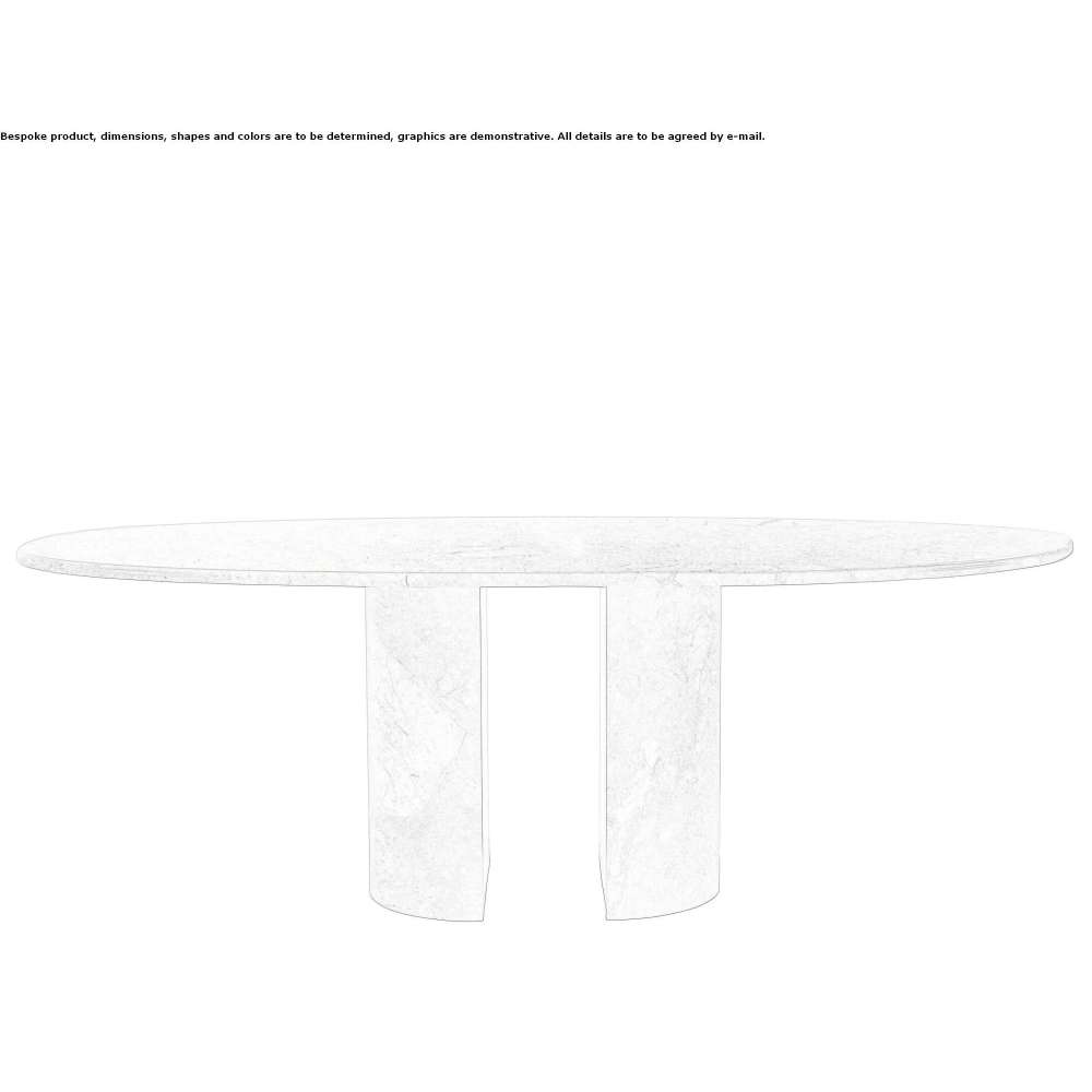Dolmen ma majestatyczny marmurowy blat, 3 cm, który spoczywa na dwóch wolnostojących półokrągłych podstawach wykonanych z tego samego materiału, co dodatkowo zwiększa powierzchnię nośną i zapewnia niezwykłe wrażenia dotykowe.