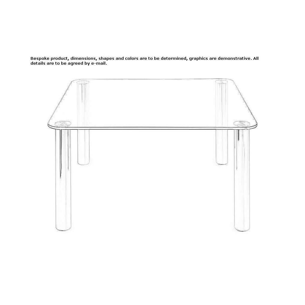 MARCUSO 2530 - Stół. Blat ze szkła płaskiego, przezroczysty lub pokryty cementem akrylowym, w odcieniu antracytowym, z ochronną nanotechnologiczną powłoką odporną na plamy. Zdejmowane nogi ze stali nierdzewnej 18/8, pasujące do przezroczystego blatu lub ze stali pomalowanej na kolor antracytowy, pasujące do blatu pokrytego cementem.