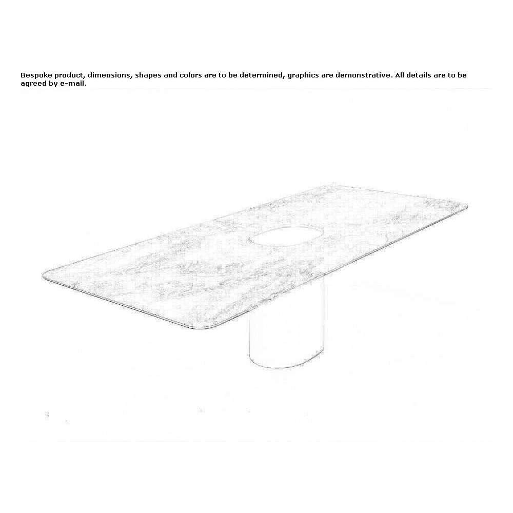 Blat: prostokątny, zaokrąglony na rogach, dostępny w kilku rodzajach marmurów w połączeniu z płytą z aluminiowy plaster miodu.