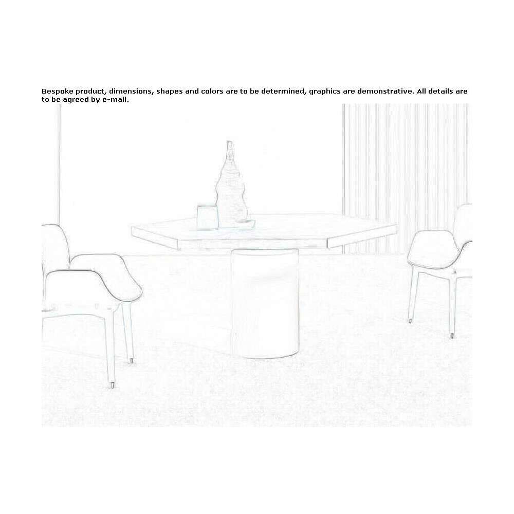 Blat o strukturze plastra miodu pokryty alpaką, z postarzanej miedzi lub antycznego mosiądzu, z matowym lakierem. Zakrzywiona, cylindryczna noga z topoli wykończona betonem Terra Cruda (mineralne wodoodporne wykończenie, półodkształcalny, jednoskładnikowy materiał cementowy) ręcznie wiosłowanym przez mistrzów rzemiosła. Noga profilowana ze sklejki o nieregularnym kształcie z powłoką kamienną z wodoodpornym olejem ochronnym.