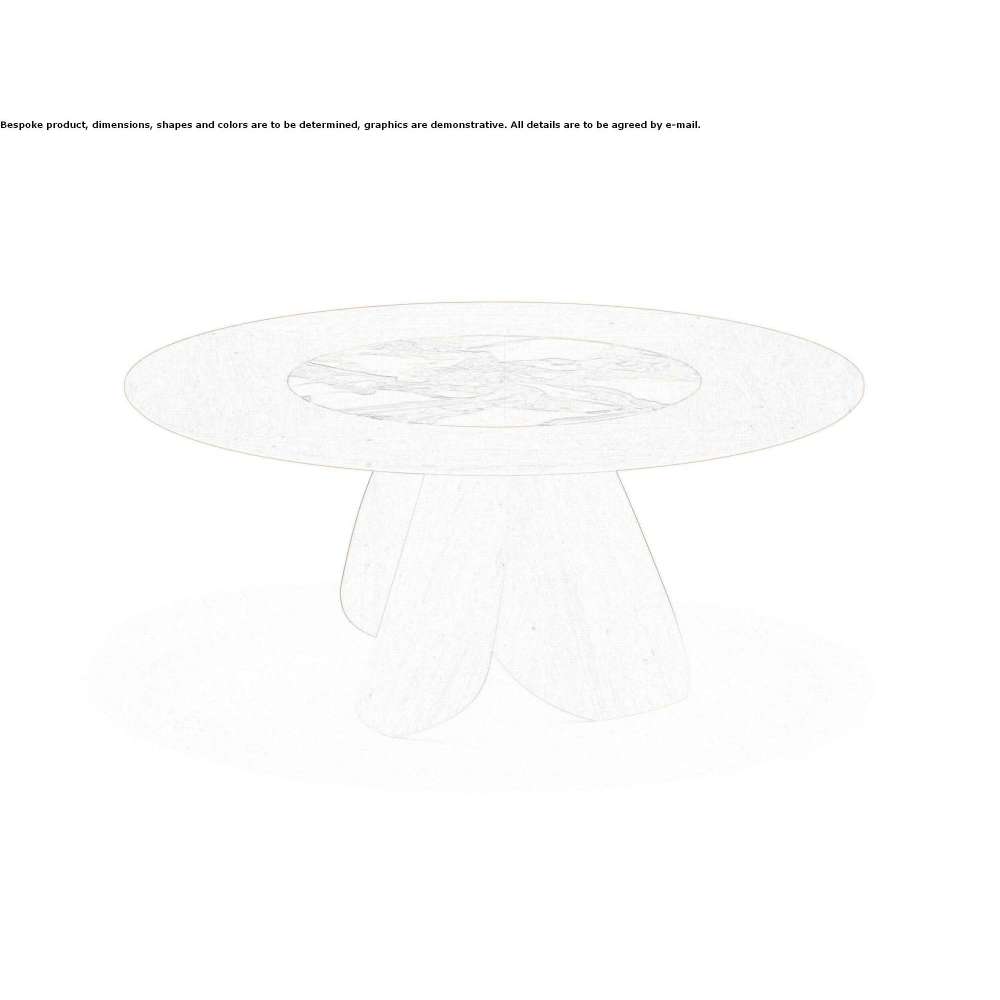 Veliero to stół z wbudowaną w blat obrotową tacą Ø 100, obrót o 360° w osi pionowej. Drewniana podstawa składająca się z trzech żagli w kształcie.