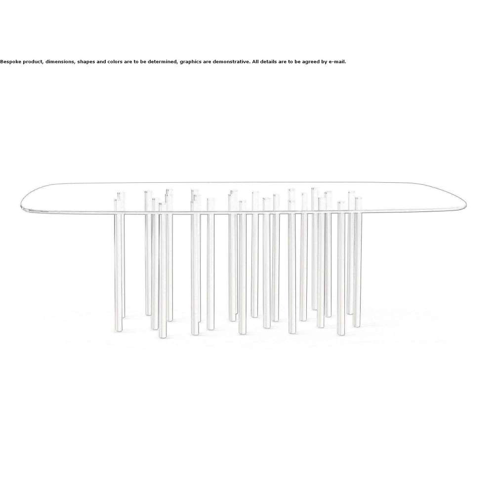 Projekt stworzony, aby umeblować i nadać charakter przestrzeniom, dzięki przezroczystości szklanego blatu w połączeniu z licznymi stalowymi nogami, cienkimi rurowymi elementami ze stali chromowanej lub z brązu lub metalu malowanego na matę ołowianą, których liczba i położenie różnią się w zależności od wielkości i kształtu blatu, tak aby zapewnić maksymalną stabilność i spójność wizualną. Mille to stały stół, który wydaje się posiadać całą harmonię i dynamikę przezroczystego ciała w ruchu.