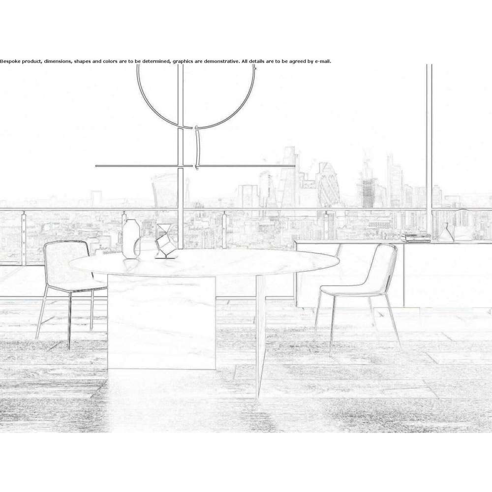 Konstrukcja tego stołu, który może mieć okrągły lub prostokątny blat, składa się z cienkich warstw. To rzeźbiarska, materiałowa konstrukcja, która dzięki innowacyjnemu wykończeniu XGlass umożliwia uzyskanie smukłych, mocnych nóg ze szkła warstwowego, wykraczających poza granice naturalnych materiałów, bez negatywnego wpływu na środowisko.