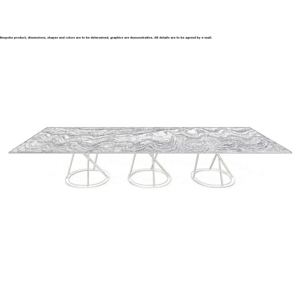 Philippe to stół o metalowej konstrukcji. Blat ze szkła piankowego.