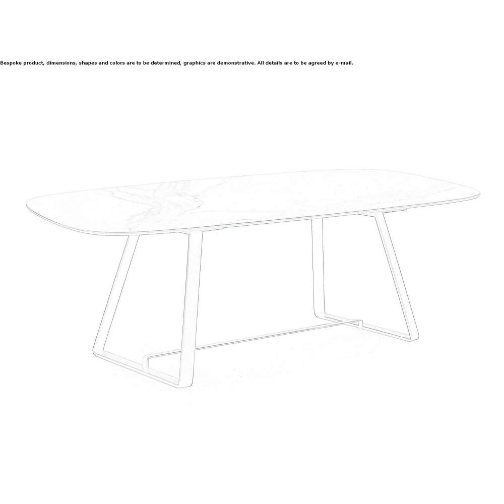 Stały stół z podstawą sań z lakierowanej stali, dostępny w różnych rozmiarach. Blat z ceramiki kryształowej lub litego drewna. Drewniany blat dostępny w wersjach 200x106 (78,7x41,7 cala) cm i 250x106 cm (98,4x41,7 cala). Prostokątny blat z zaokrąglonymi narożnikami dla wersji 220x116 cm (86,6x45,7 cala) i 250x120 cm (98,4x47,2 cala).